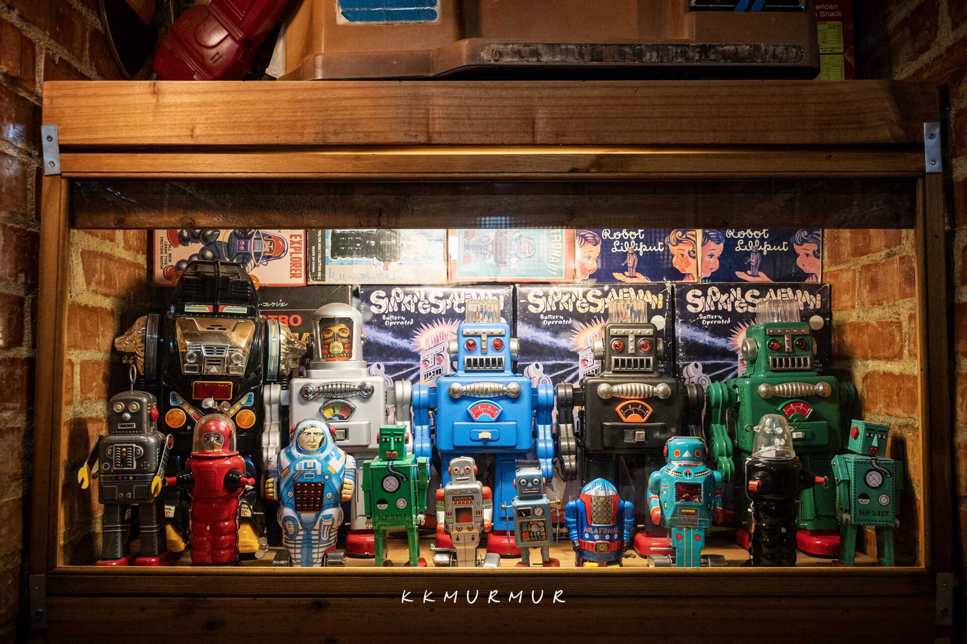 各種古物擺飾、老玩具、復古機器人,構建出了這十分有特色的咖啡廳空間。