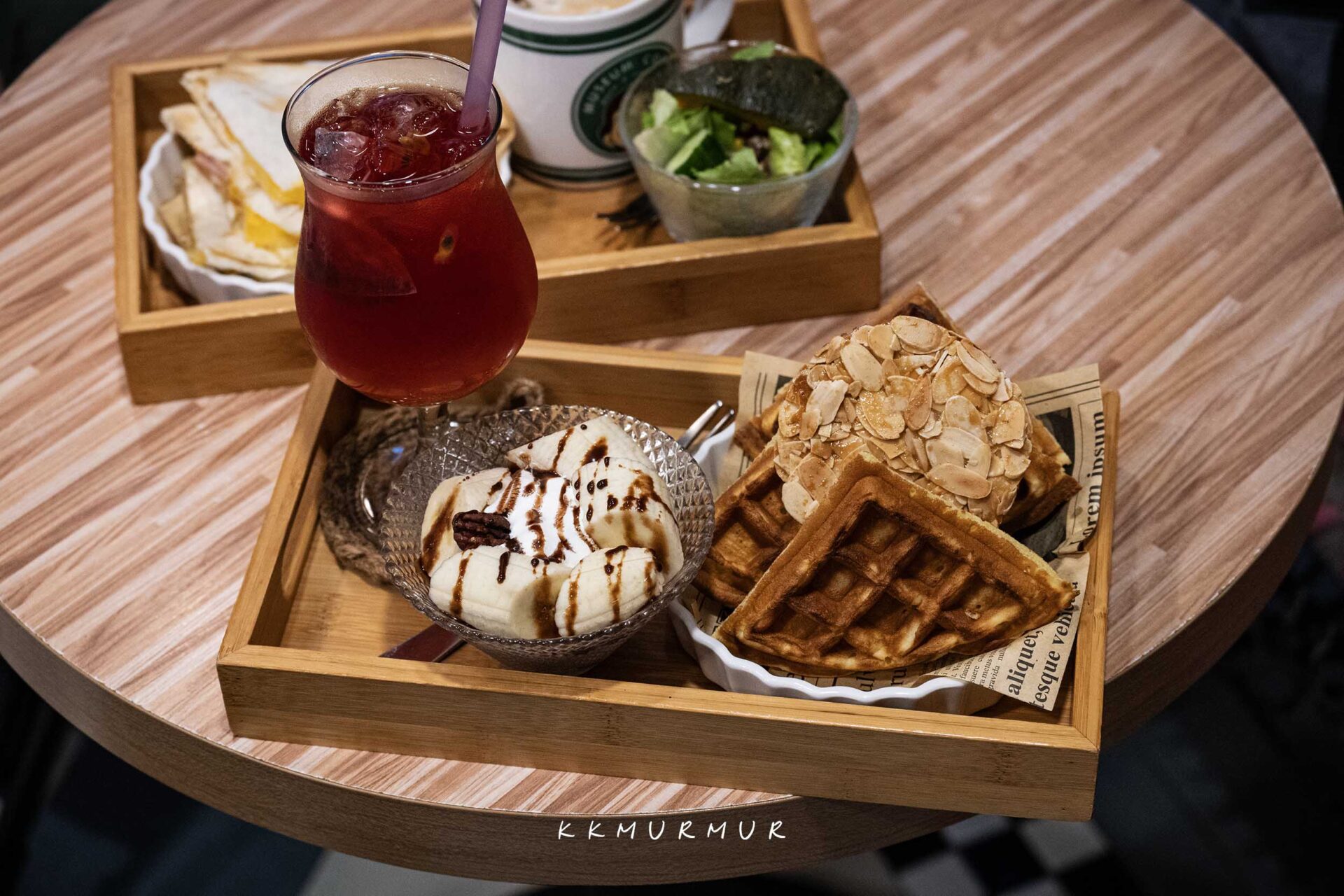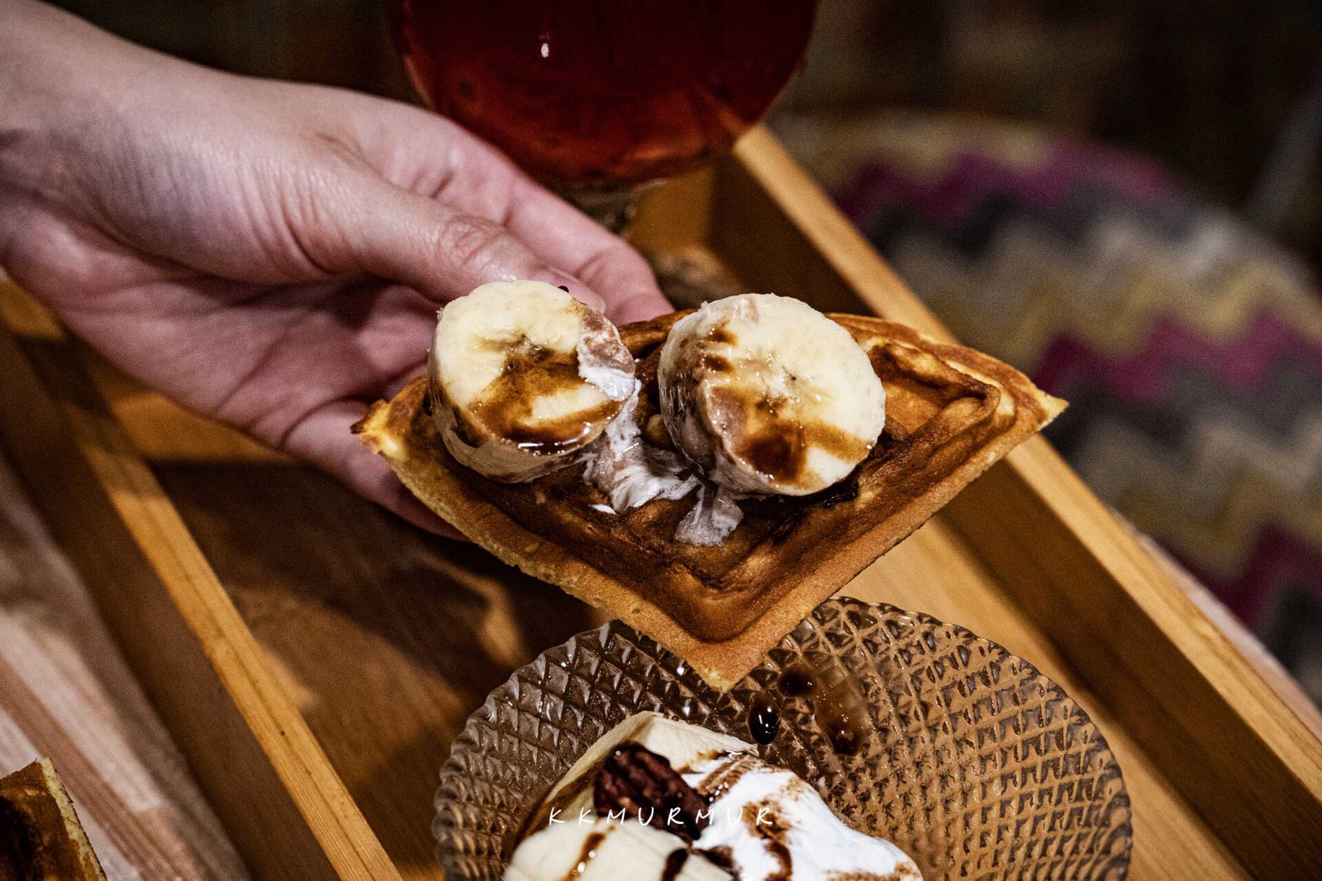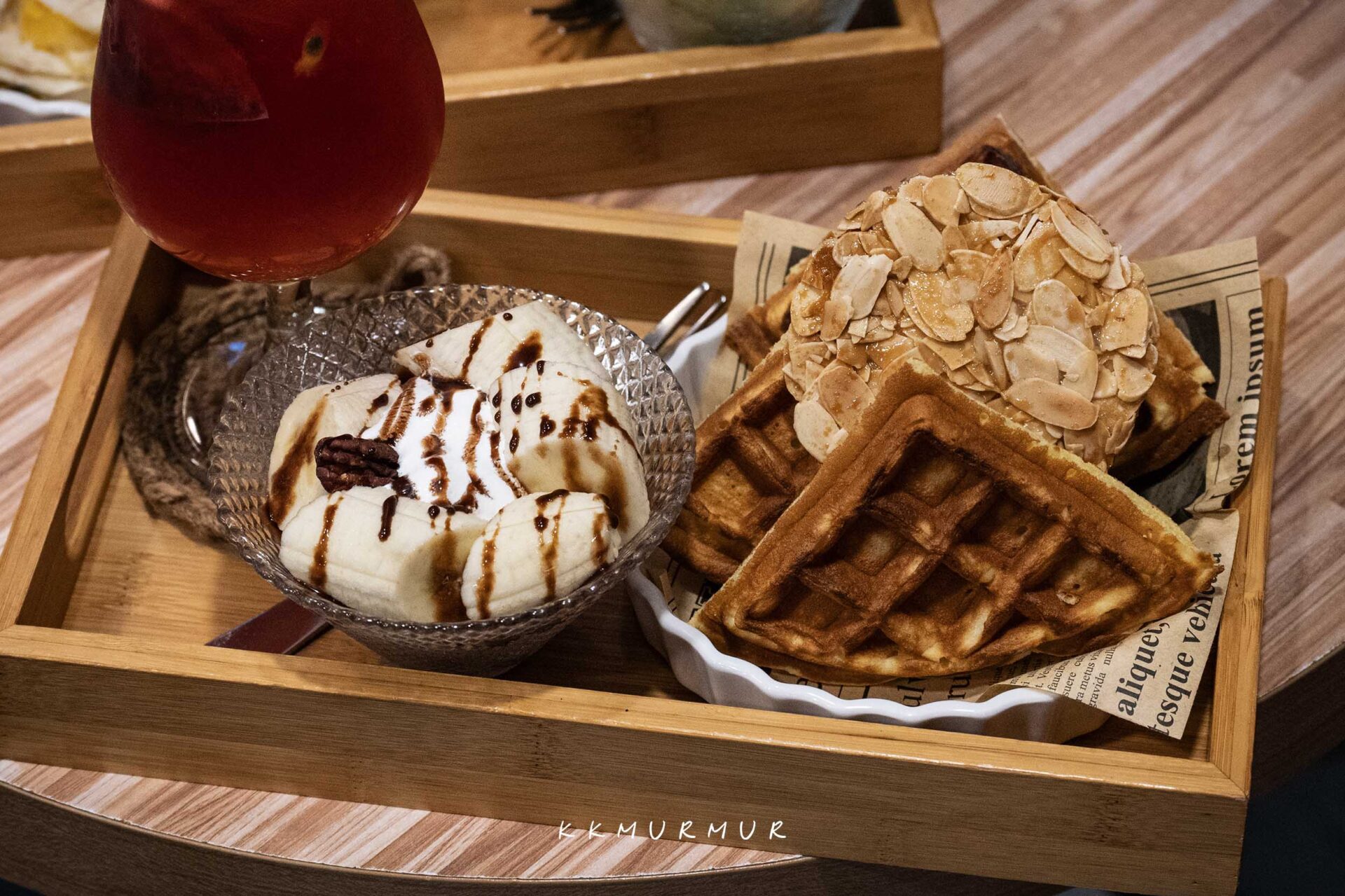 【香蕉巧克力聖代鬆餅套餐】除了鬆餅、香蕉與巧克力冰淇淋外,亦有附上一片杏仁餅乾,$250的價格這樣真的也是超級佛心了,口味雖不會讓人特別感到驚豔或大嘆稱奇,但整體也還是有一定的水平,以這般定價搭配這空間來說,我覺得是十分物超所值的。