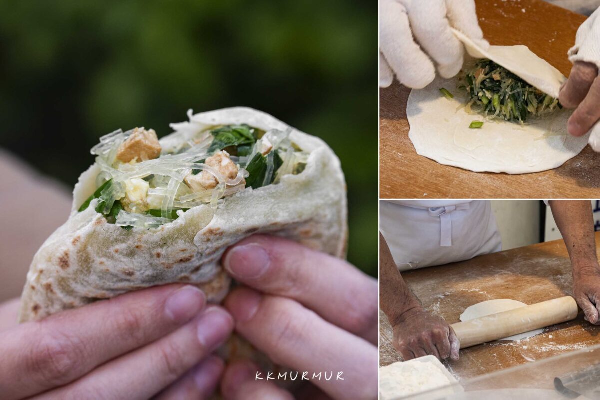 台北內湖區的【乾烙韭菜盒】,鄰近湖光市場,就在人聲鼎沸的康寧路一段附近。經過這家店多次,每次都被老闆現擀現做的俐落動作給吸引眼球,查了一下發現是評價很