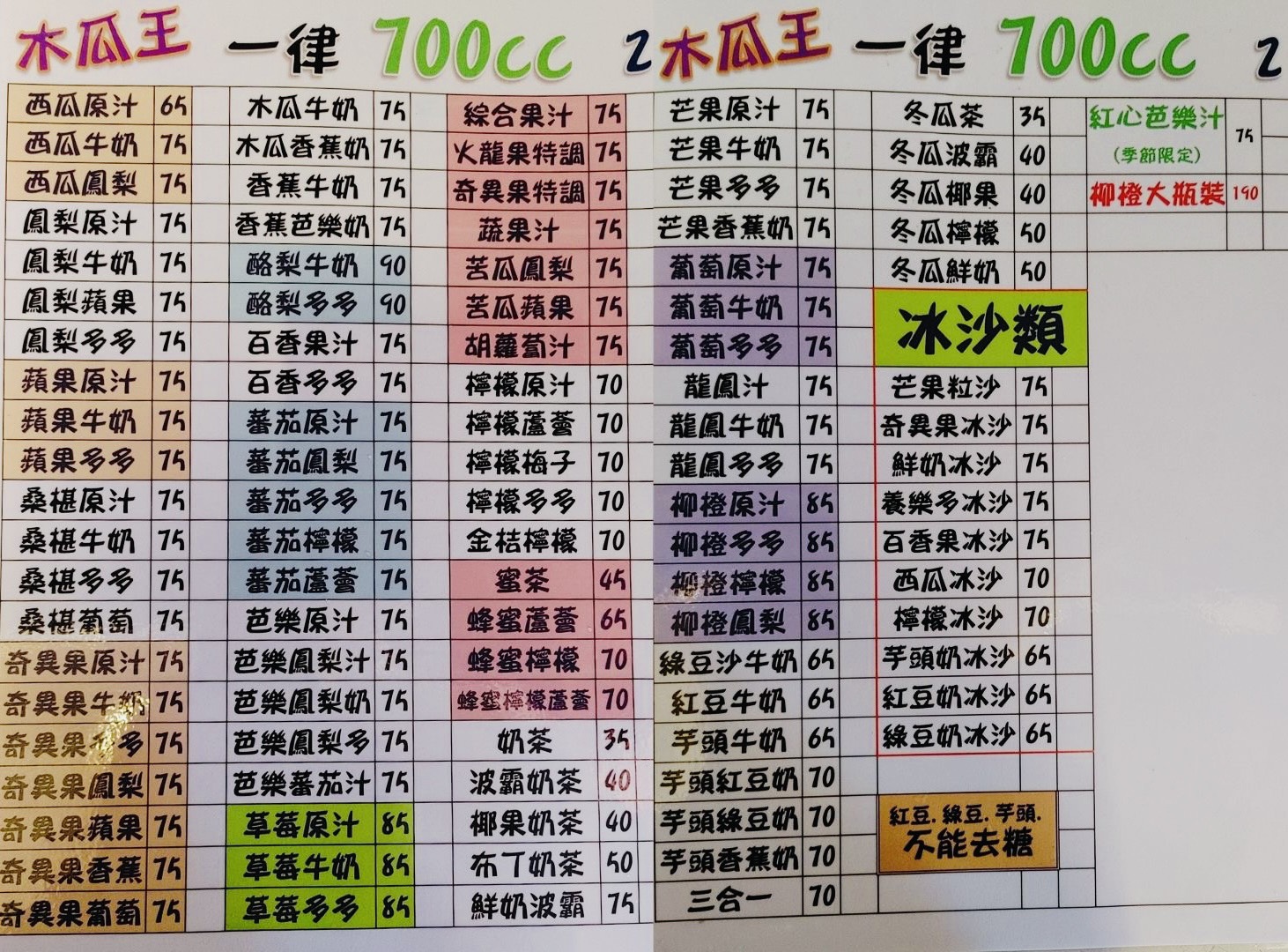 【木瓜王】的各種果汁,關於甜度與冰塊,都有詳細的說明,可以參閱貼在店面上的告示!
