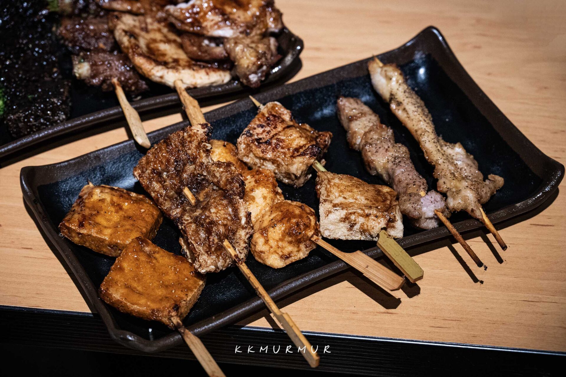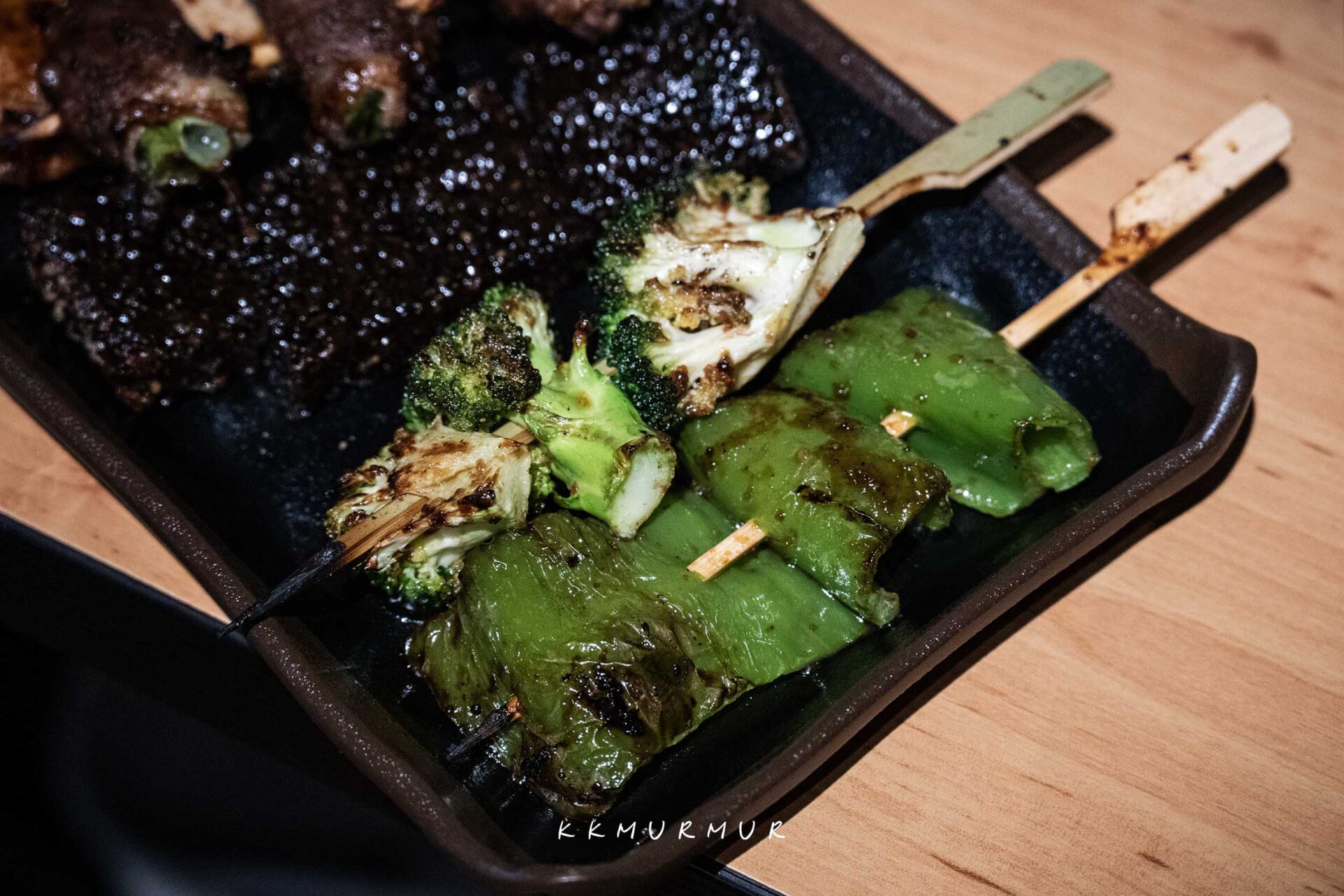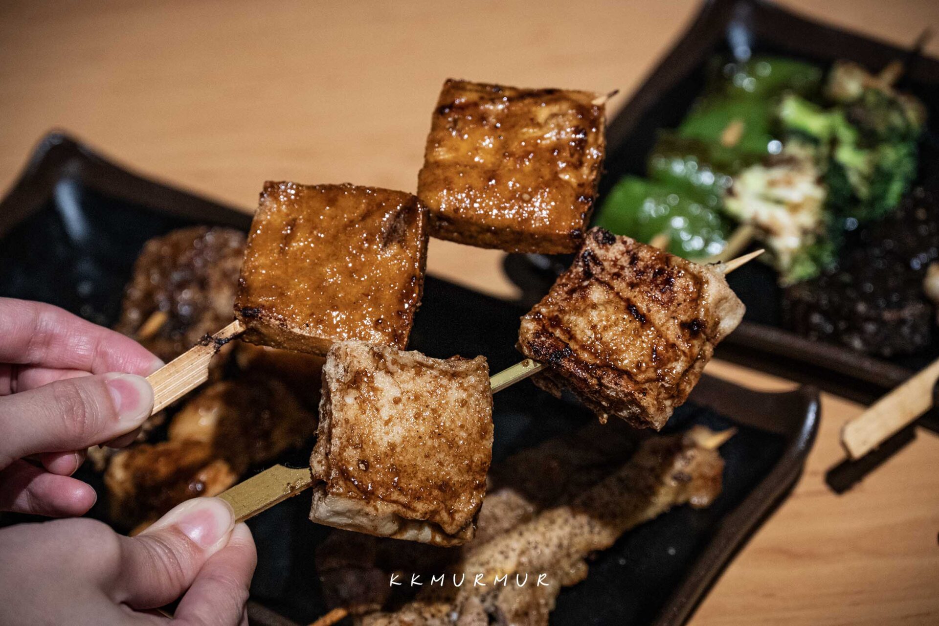 【神醬燒百頁豆腐】真的是很好吃欸,烤肉神醬的風味層次非常豐富,鹹香、醬香與多種辛香彼此平衡的很不錯,百頁豆腐內裡烤至軟嫩綿口,吃起來絕頂療癒,這我可以吃好幾串;【雞腿肉串】【梅花豬肉串】,簡單以鹽與黑胡椒調味就好吃,肉質嫩口兼具了讓人滿足的肉感;【神醬燒豆干】也很不錯,入味滿分而不過重,隨著每一下咀嚼滋味更是迷人。
