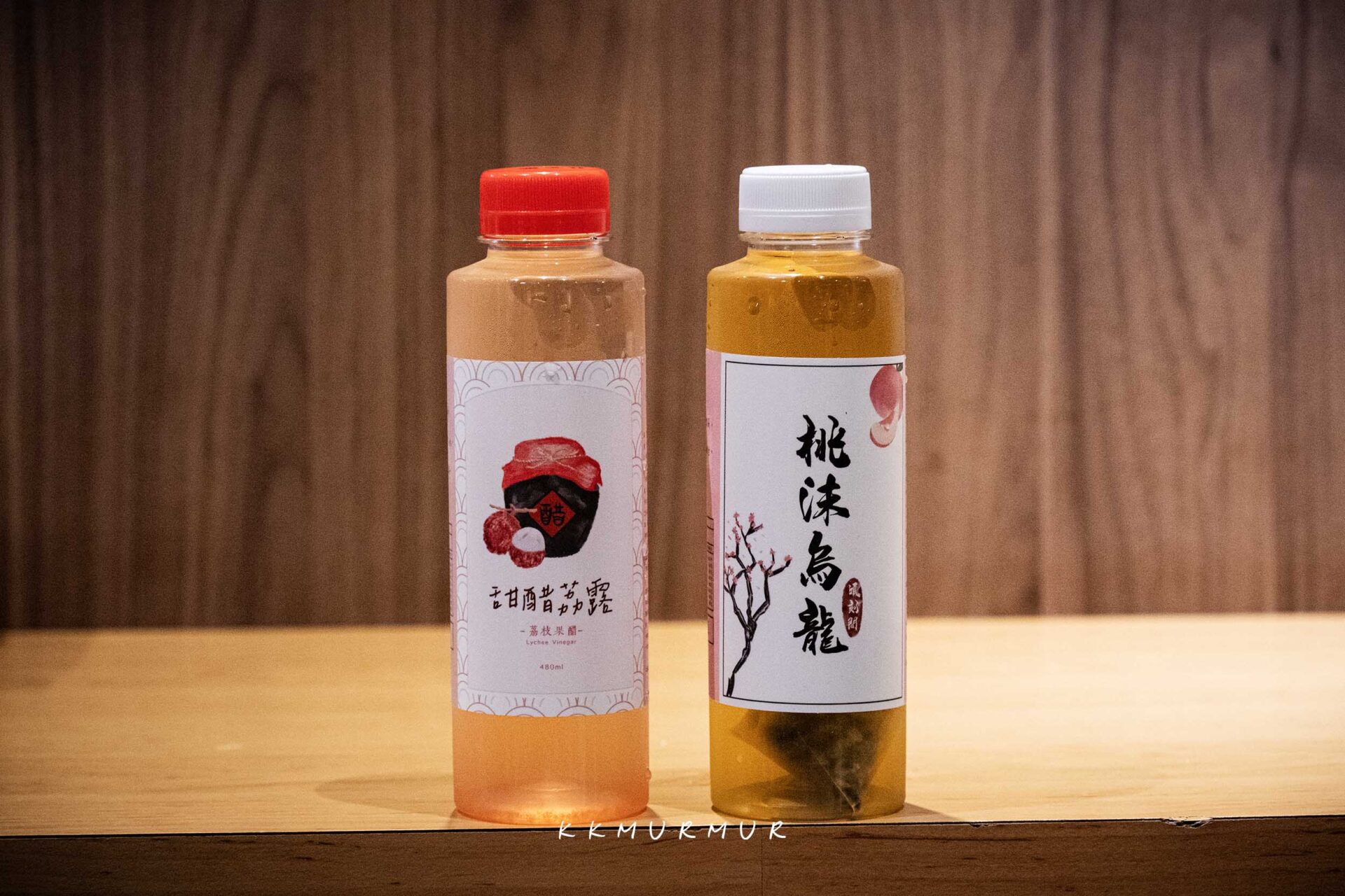 【桃沫烏龍】喝起來茶香甘甜交織著淡雅桃香,【甜醋荔露】那適口不過強烈的酸甜感也是很爽口,兩者搭著餐點飲用都很合適,除了能去油解膩外,也能起到切換味蕾避免疲乏的作用。