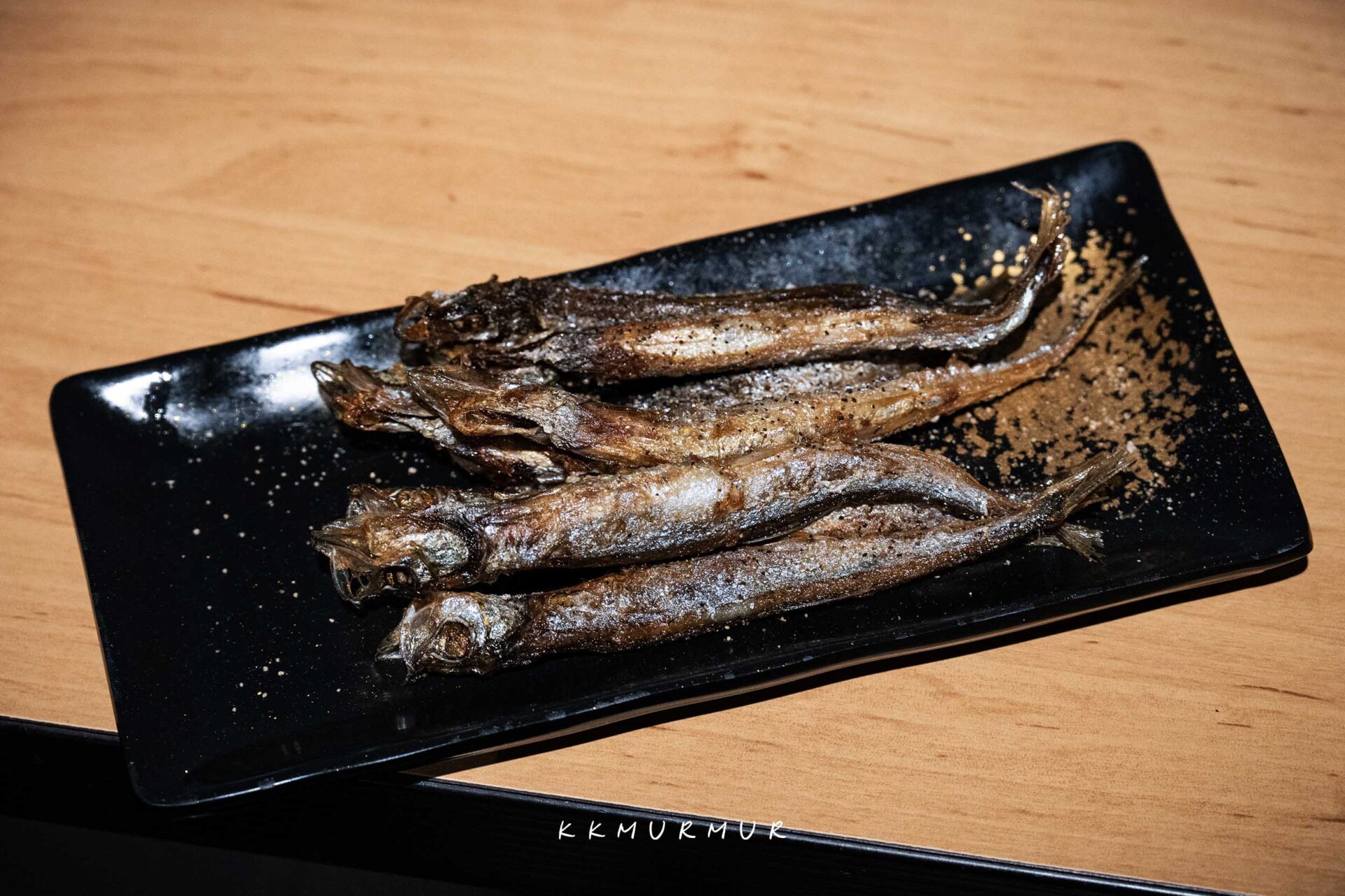 【柳葉魚一夜干】非常下酒,外皮帶點酥脆,內裡的蛋也很飽滿,整尾都可以食用,容易讓人停不下來的一直夾來吃。