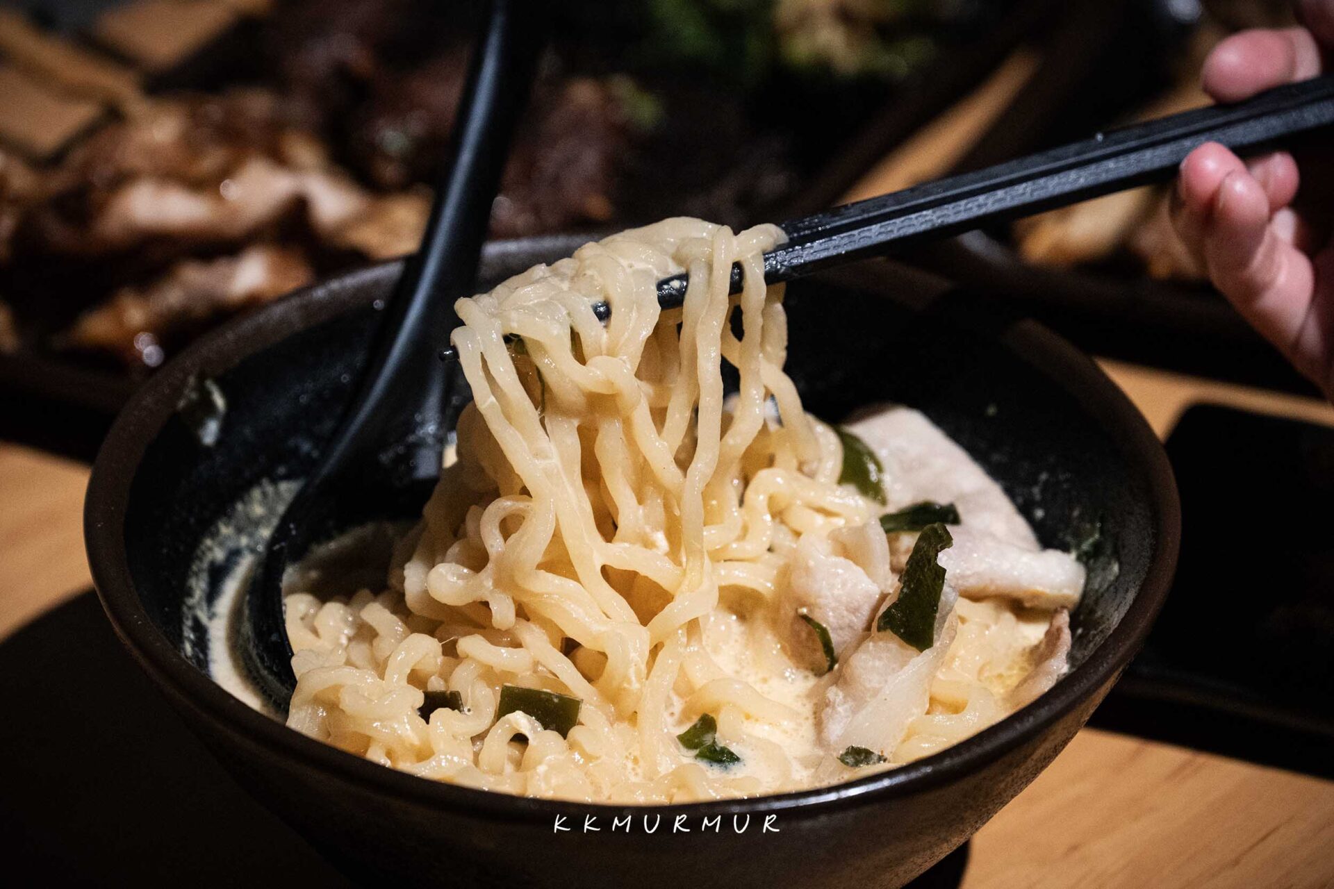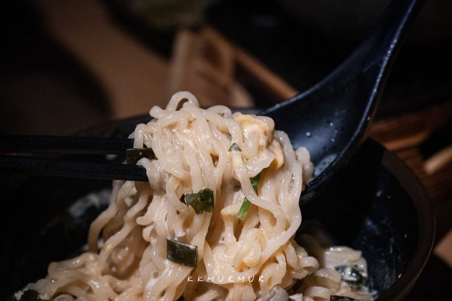 【柒息地拉麵-原味】有將近一半的牛奶與雙倍起司,奶香濃郁卻不過於膩口或強烈,帶點粗度的麵體飽吸湯汁精華後,仍保有著不錯的彈性與麵感,湯頭喝起來濃醇兼具溫順,天熱吃很不錯、天冷吃更是滿足。