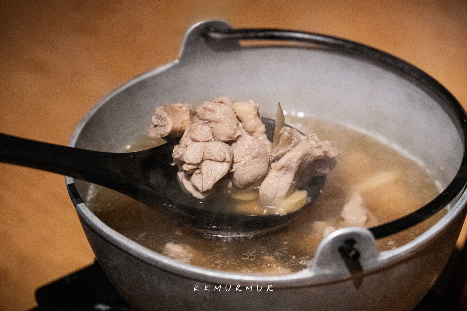 【剝皮辣椒雞湯】非常爽快,雞肉軟嫩帶彈性,剝皮辣椒的辛香、辣感與獨有香氣,整個完美融入到湯中,入口辛辣的那超過癮感受,讓我一喝就愛上,剛好到訪這天氣溫比較涼一點,停不下來的一直喝,一副就像被串燒給耽誤的鍋物湯品,好喜歡啊!
