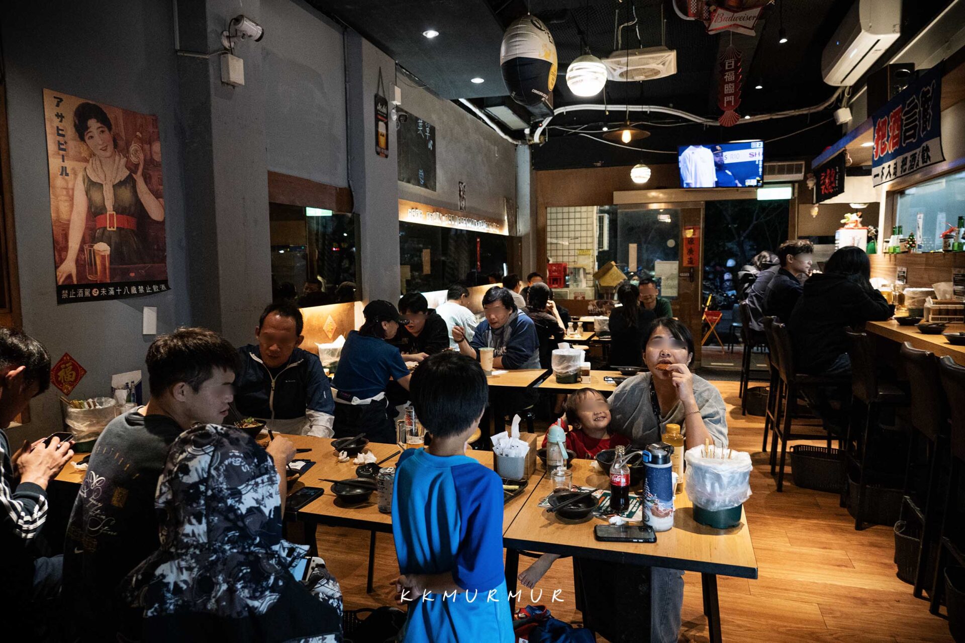 我們是平日傍晚到訪【柒息地串燒居酒屋士林店】,這天還下著細雨,殊不知這生意好得有夠狂,下班時間一到,人潮整個超多直接滿座,有點非常的厲害。