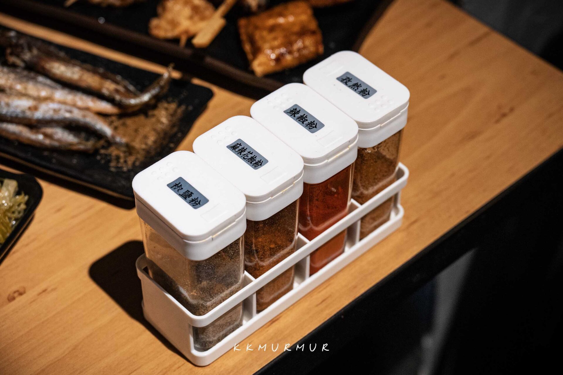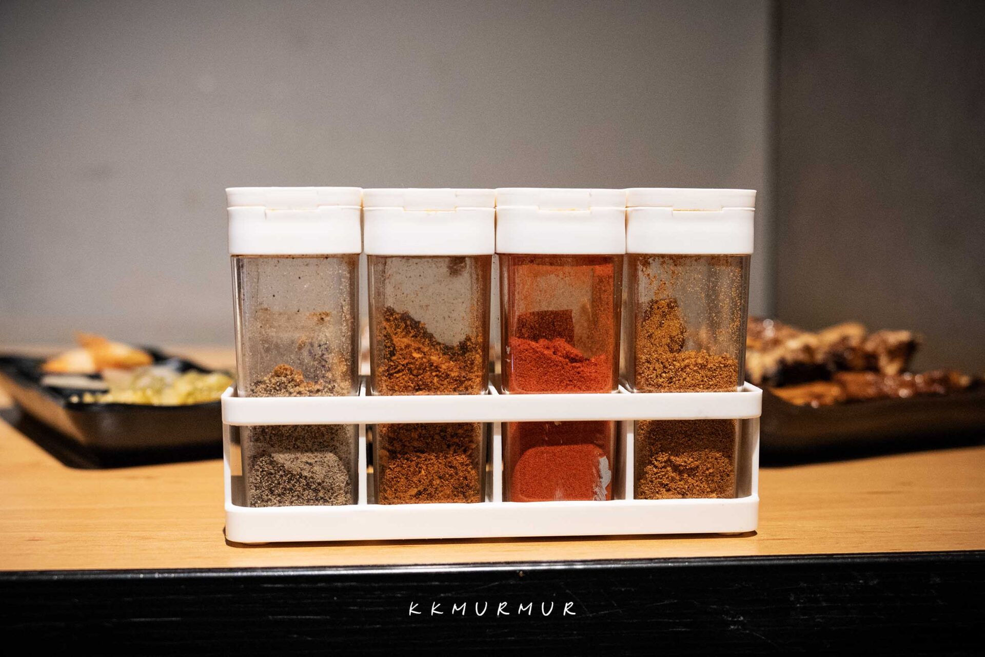 【柒息地串燒居酒屋士林店】桌上附有四種調味粉可以搭配,讓原本就很優秀的神醬串燒,賦予更多層次的豐厚感與滿足感。