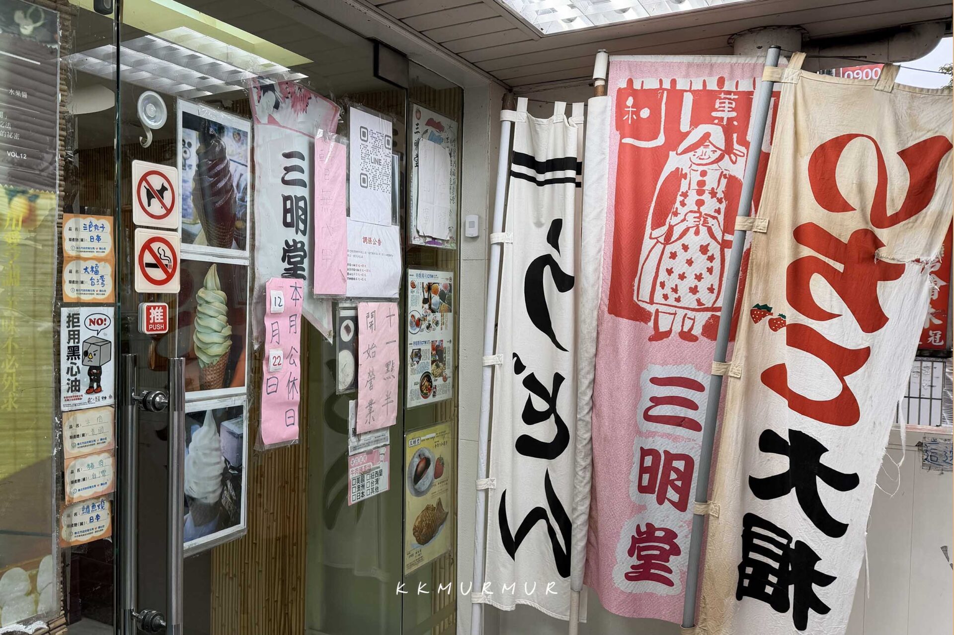 在天母街頭開業三十餘年的老字號【三明堂】,招牌乍看像間老派中藥行,但其實是家以草莓大福、和菓子聞名的日式小店,老闆娘為曾赴日本學習技藝的台日家庭背景,與日本丈夫一起經營。幾年前除了和菓子外,也是一家頗受在地人喜愛的日本家庭食堂,提供如烏龍麵、咖哩飯、鰻魚飯、炸蝦定食等家常料理並可以內用。近年【三明堂】轉型以外帶為主,草莓季則會暫停鹹食餐點,專注販售草莓大福與和菓子商品。店家招牌的草莓大福,以薄皮與帶顆粒的紅豆餡著稱,並於曾榮獲「500甜團」的第十名,也因此每到草每季時,預訂的人真的很多,這幾年現場臨時跑了幾次,沒有提前預約很容易買不到,因此如欲品嘗,建議一定要提前預訂哦!