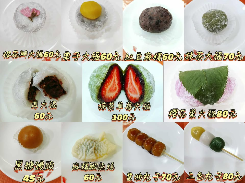 【三明堂】除了最有名的草莓大福,也有其他許多和菓子品項,菜單如上,可以根據心情與口味來挑選。而針對草莓大福,店家每周都會在其FB粉專公布草莓的產地,會依狀況挑選台灣或加州的草莓,這部分都會在粉絲專頁上清楚標註。