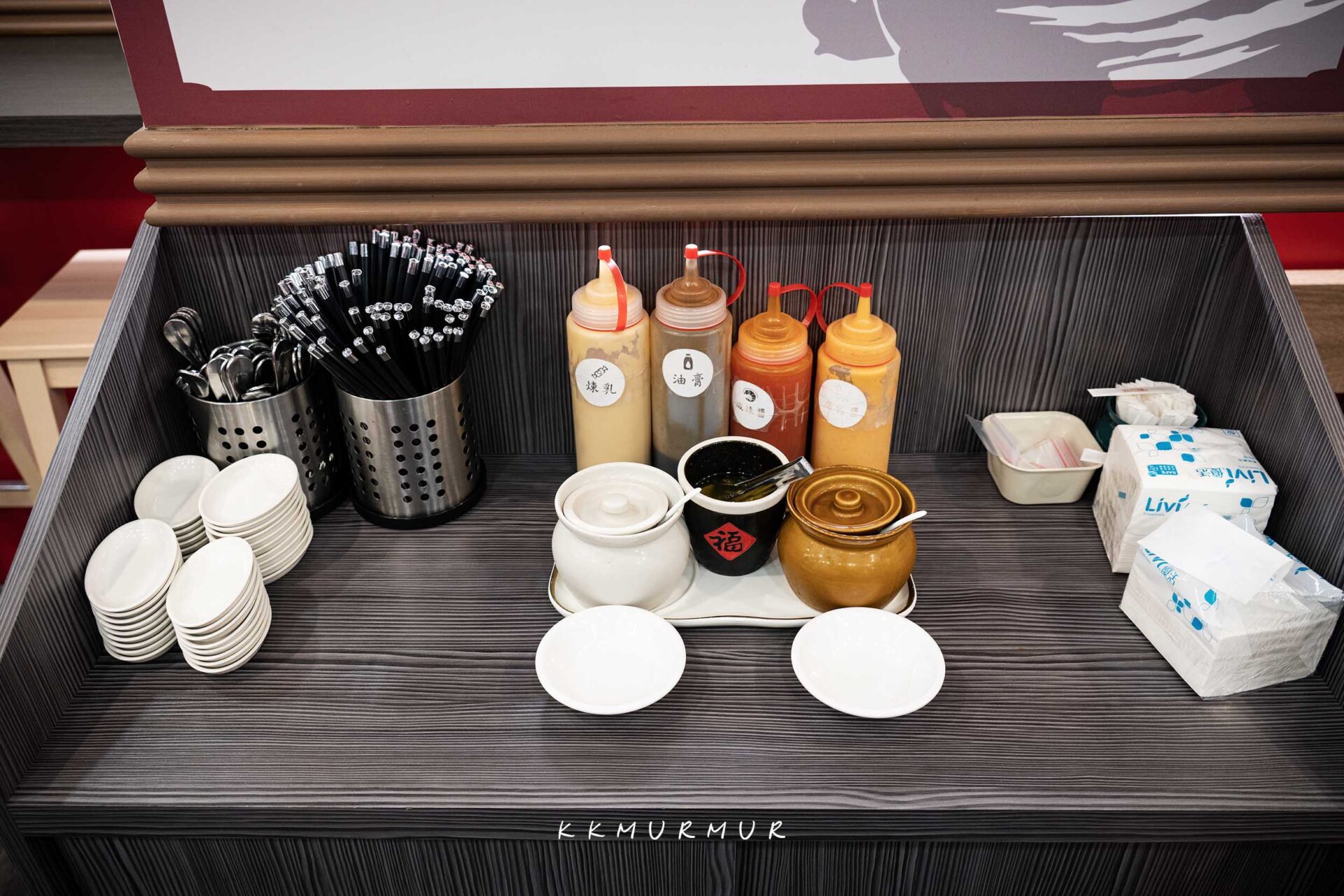 店內的沾醬佐料,舉凡如腐乳醬、醬油膏、辣椒醬等等都可以自行取用。