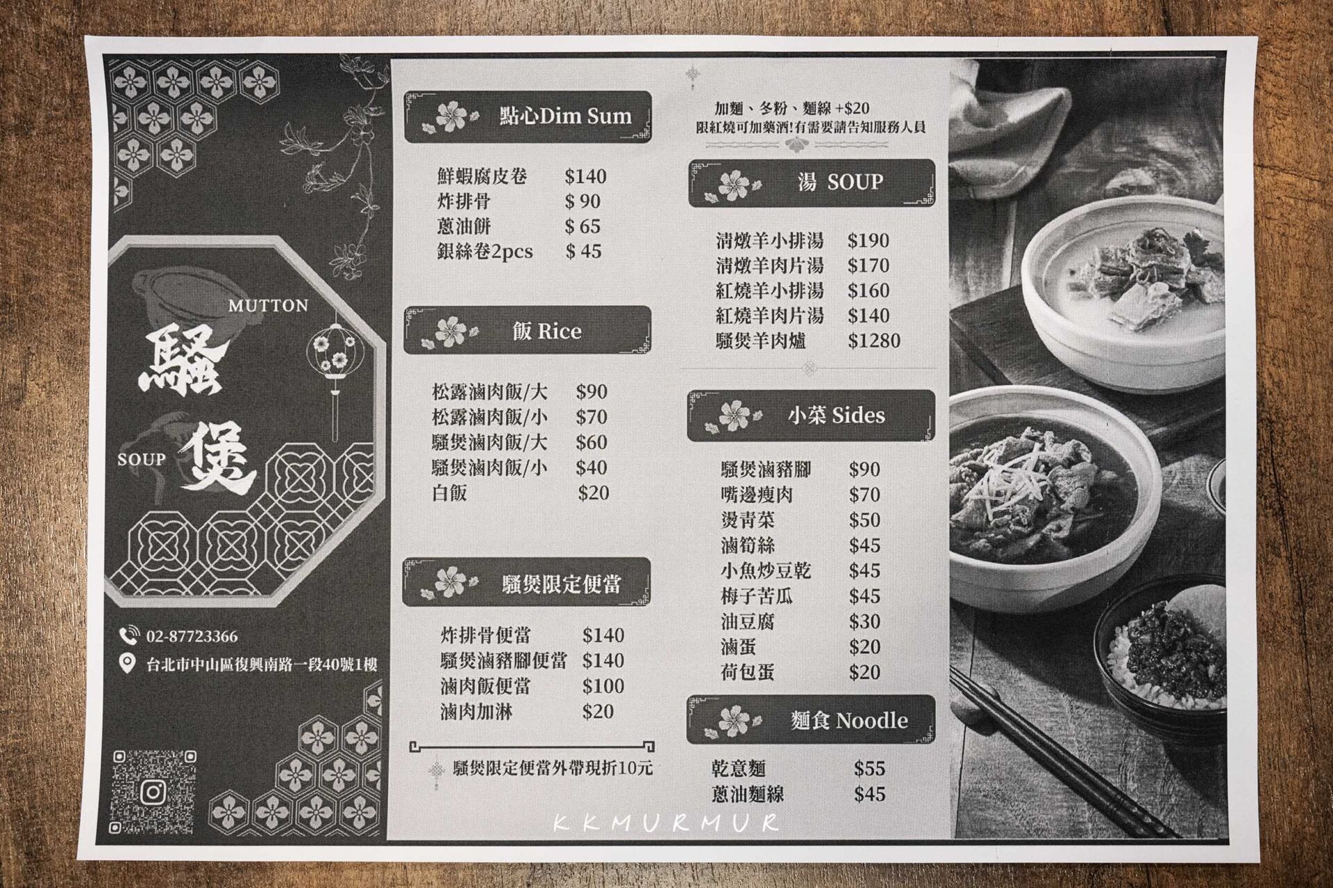 台北市中山區的【騷煲 新台潮羊肉湯】,是老字號北方菜館「泰和樓」的羊肉湯新品牌,清燉與紅燒湯頭各有千秋與精采,羊小排吃起來更是過癮而滿足。滷肉飯本身就很不錯,松露滷肉飯更是人氣爆棚的特色單品,香氣濃郁層次分明。鄰近捷運忠孝復興站,交通便利,親友相約或獨自品味都很合適。台北忠孝復興美食推薦【騷煲 新台潮羊肉湯】給大家!