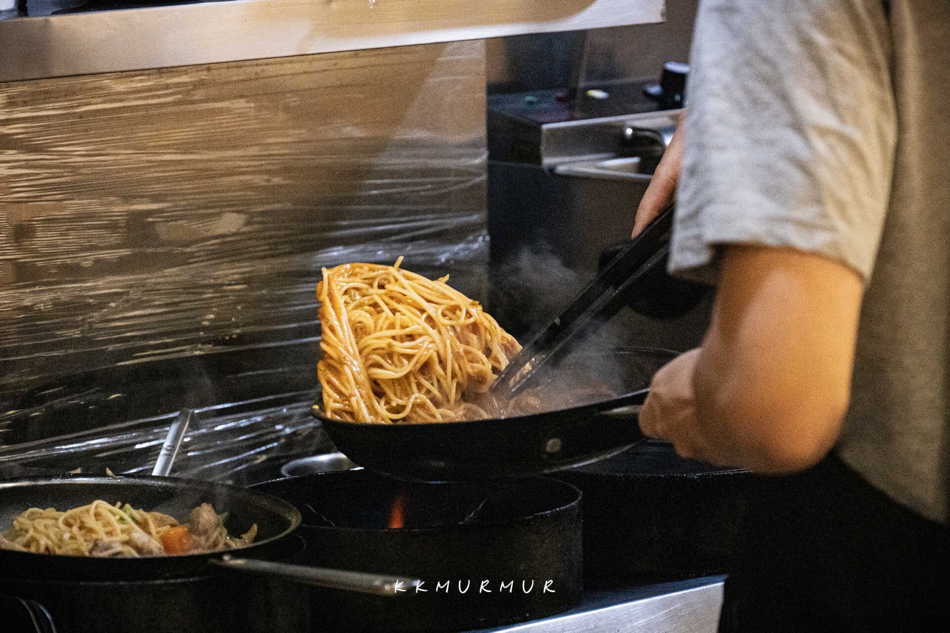 【東京家庭義大利麵】是採開放式廚房設計,主廚的每個動作與料理過程,都能在店內清楚的看見,隨著義大利麵的炒製與盛盤,那香氣真的是很讓人飢餓啊!