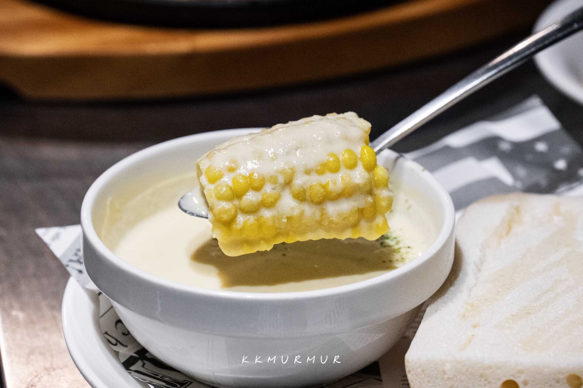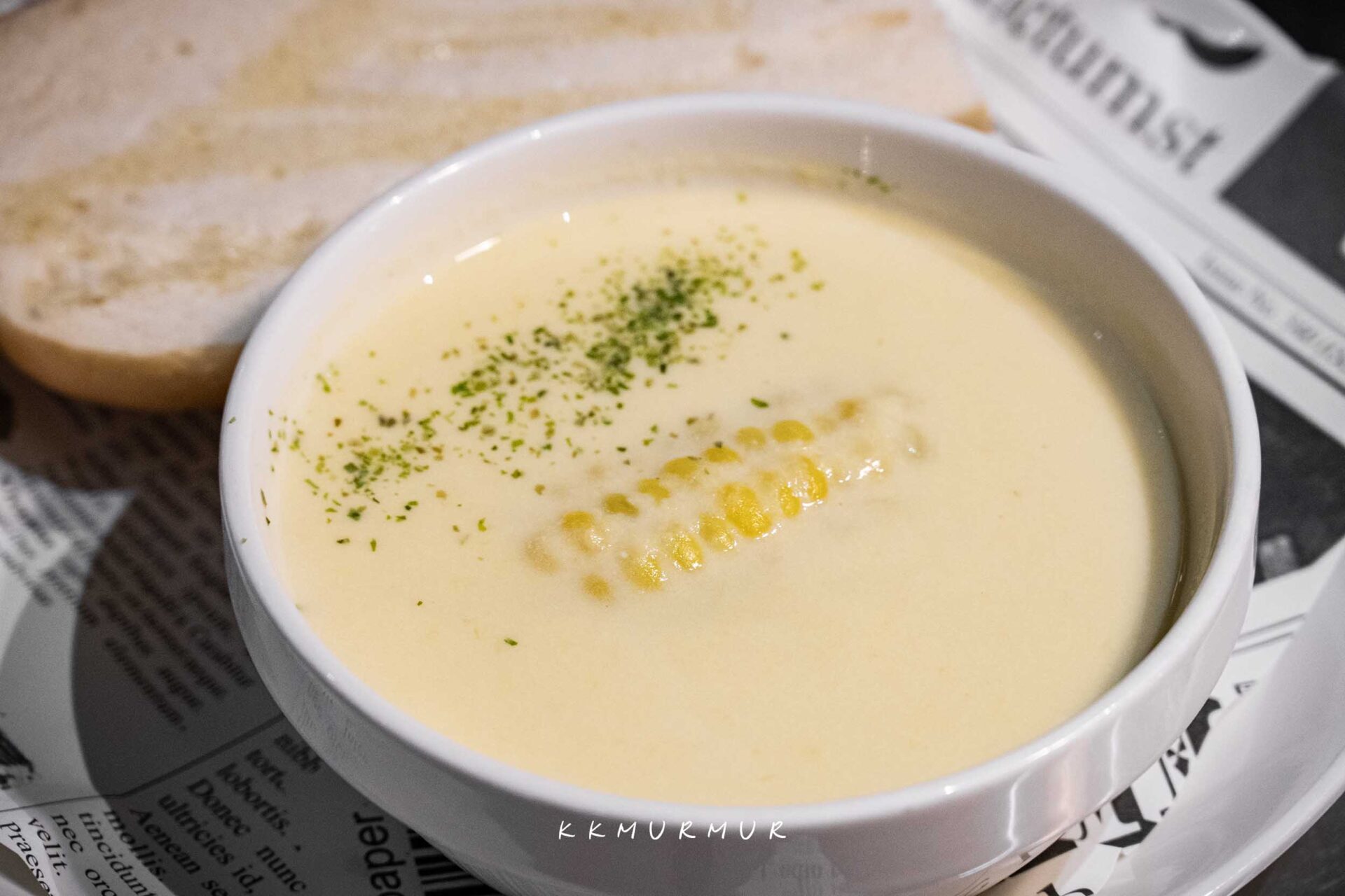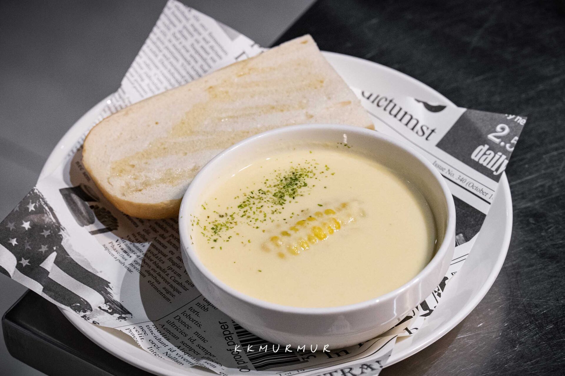 奶油玉米濃湯 $69 (季節限定)、麵包(加購) $23