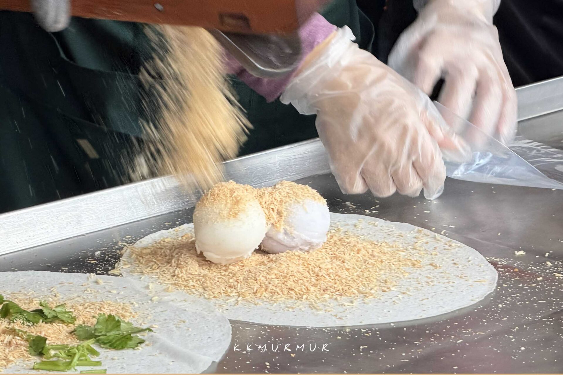 一到店面就可以看到老闆俐落的在現刨花生糖粉,那雅緻的花生香氣飄在空中整個感覺很讚。【吳記花生捲冰淇淋】一開始是以餐車的形式販售,近幾年才有了自己的店面,是許多人推薦來到宜蘭礁溪,必吃的美食小吃之一。