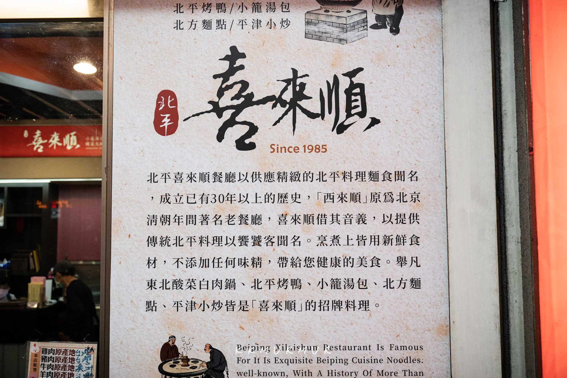 台北松山南京三民的【北平喜來順餐廳】,是一家開業近40年的北平料理餐館,前身原名為「西來順」,搬遷後隨著經營者更換,現更名為喜來順,然料理的師傅與服務人員們大部分都為原班人馬,繼續延續飄香。舉凡北京烤鴨、合菜佳餚與各式北方麵點,都可以在這裡吃到,距離南京三民站二號出口非常近,一上樓梯右手邊就是了,附近亦有收費停車場,交通停車便利,這次找到機會就來體驗看看,分享給大家啦!