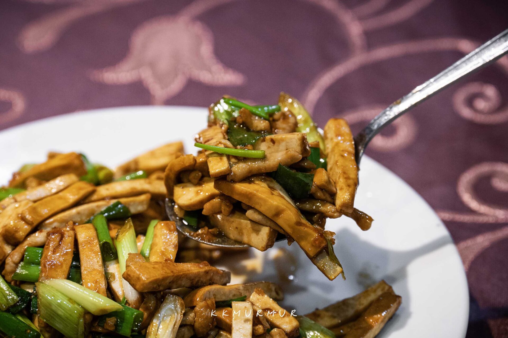【豆干肉絲】的干絲口感滑嫩,風味有著鮮明的醬香,鍋氣則較不明顯,整體來說口味是家常又下飯的,但就是可以想像得到的味道。