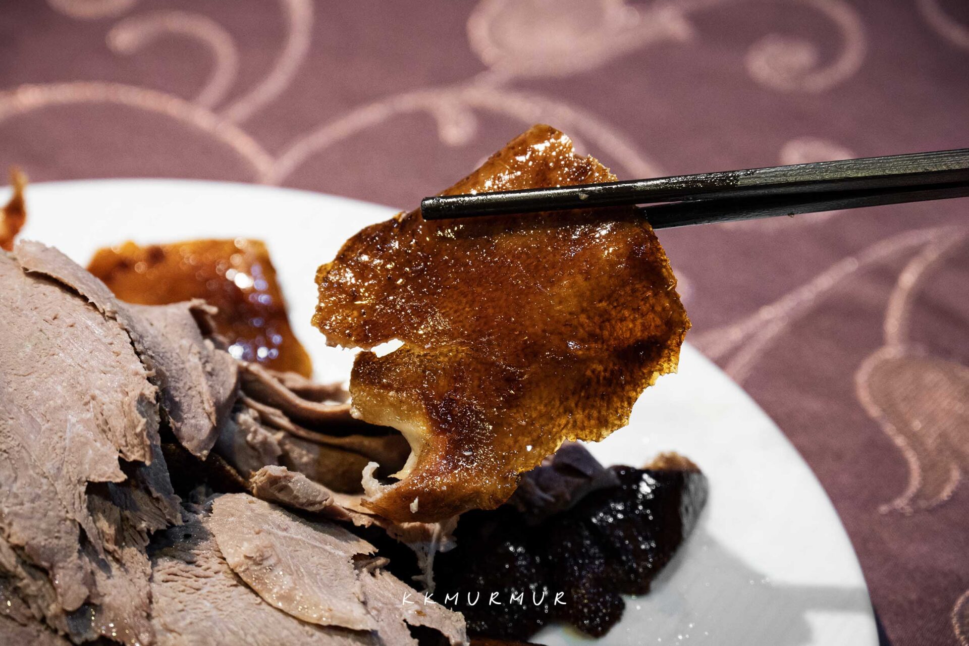 【北京烤鴨】鴨的份量我覺得算中等,鴨皮部分比預想中少了一些,但熱熱吃是酥口並有著不錯的油脂香氣;鴨肉部分還可以,建議與鴨皮一起趁熱包入荷葉餅中品嘗,冷掉之後鴨肉的口感吃起來會較乾一些,記得趁熱品嘗。甜麵醬部分還不錯,鹹甜適中不過重,荷葉餅則是走較為薄皮一點的路線。