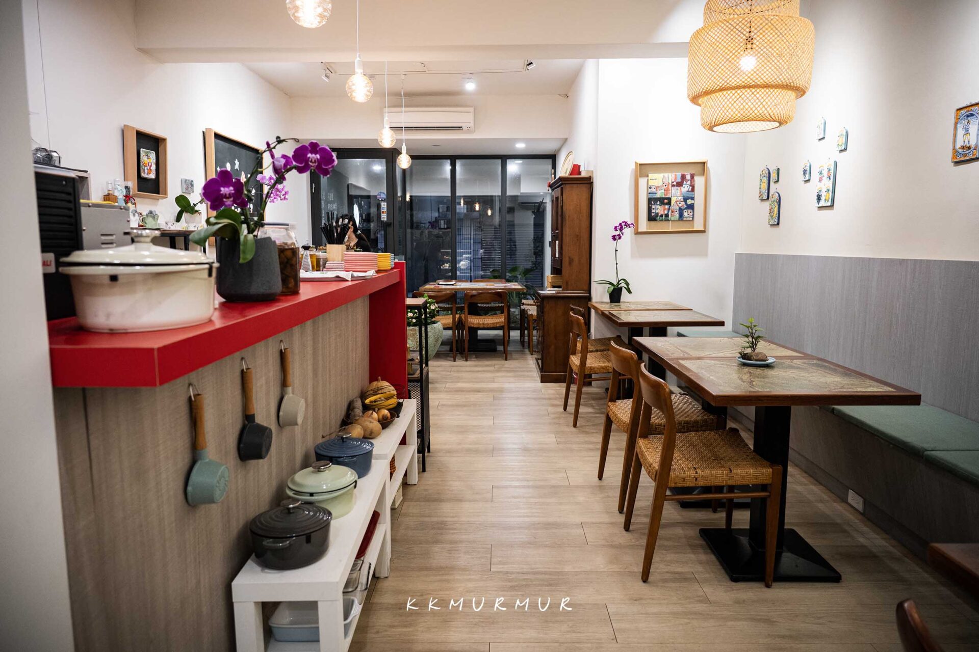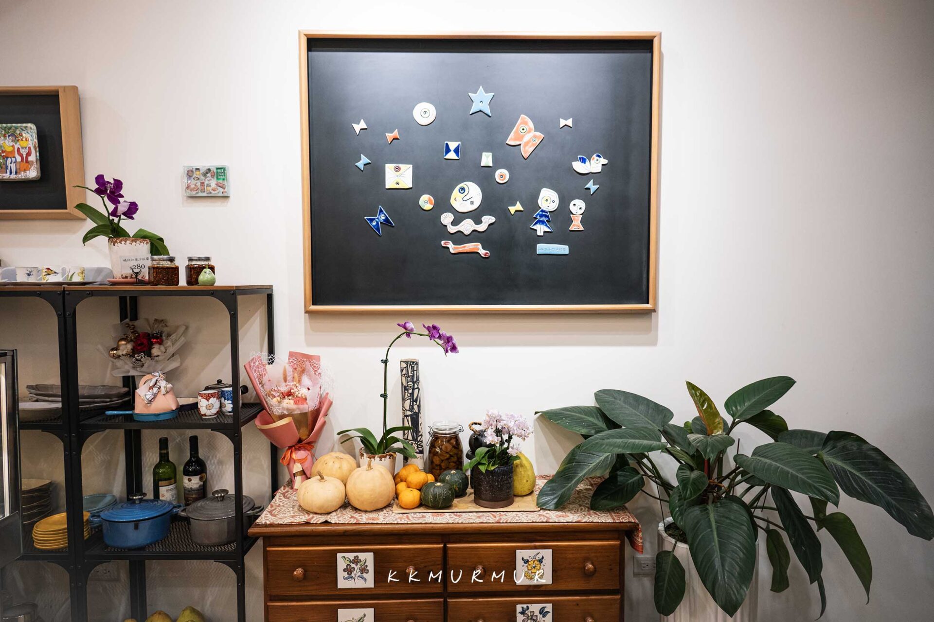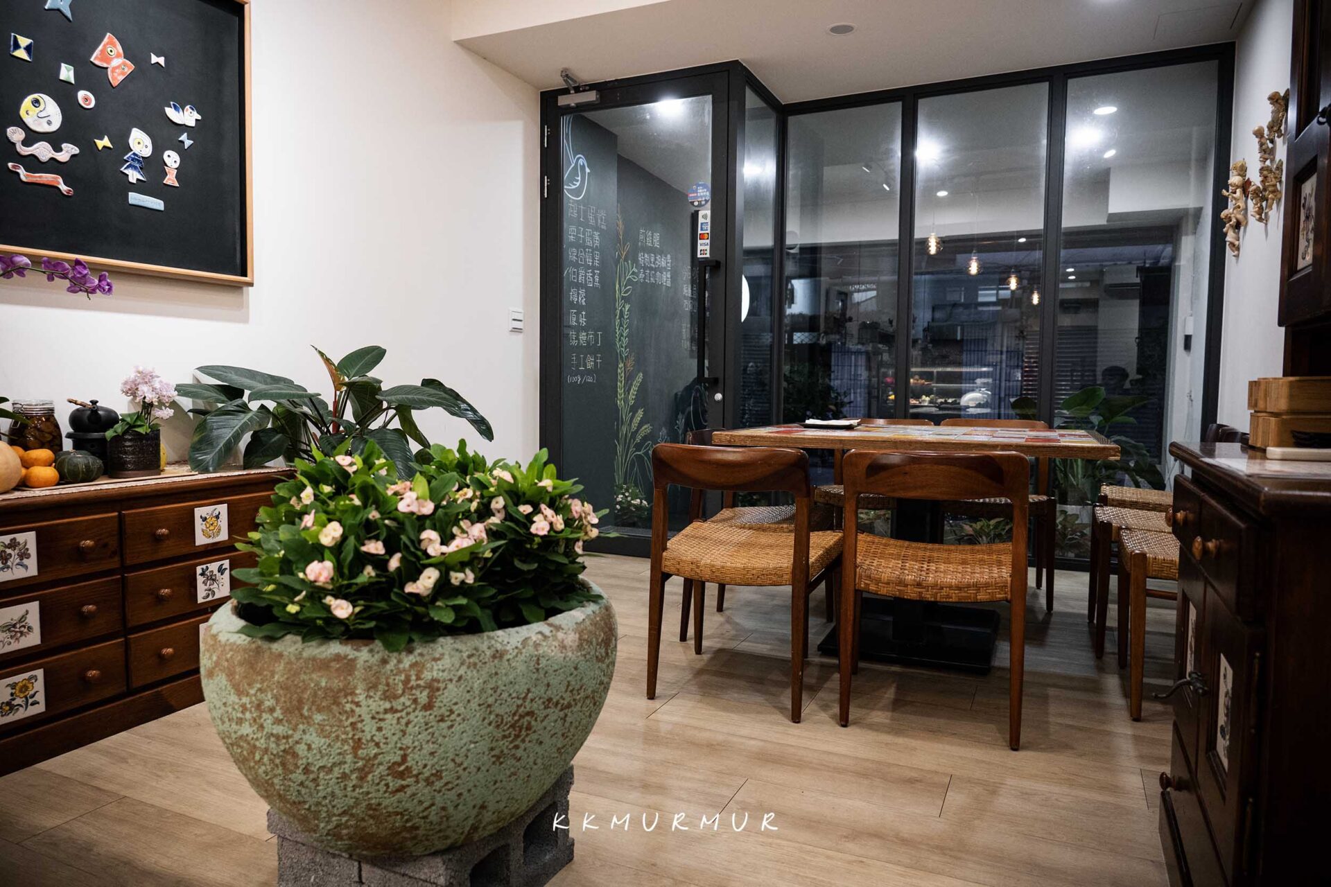 【曉秋咖啡廳】的用餐空間帶點歐風鄉村感,白淨系牆面、木質地板與藝術裝置物的點綴,讓整體氛圍十分的溫馨而有溫度。桌與桌之間的桌距很寬敞,不會為了要塞一堆桌子而彼此太過鄰近,整段用餐過程是很放鬆且自在的。