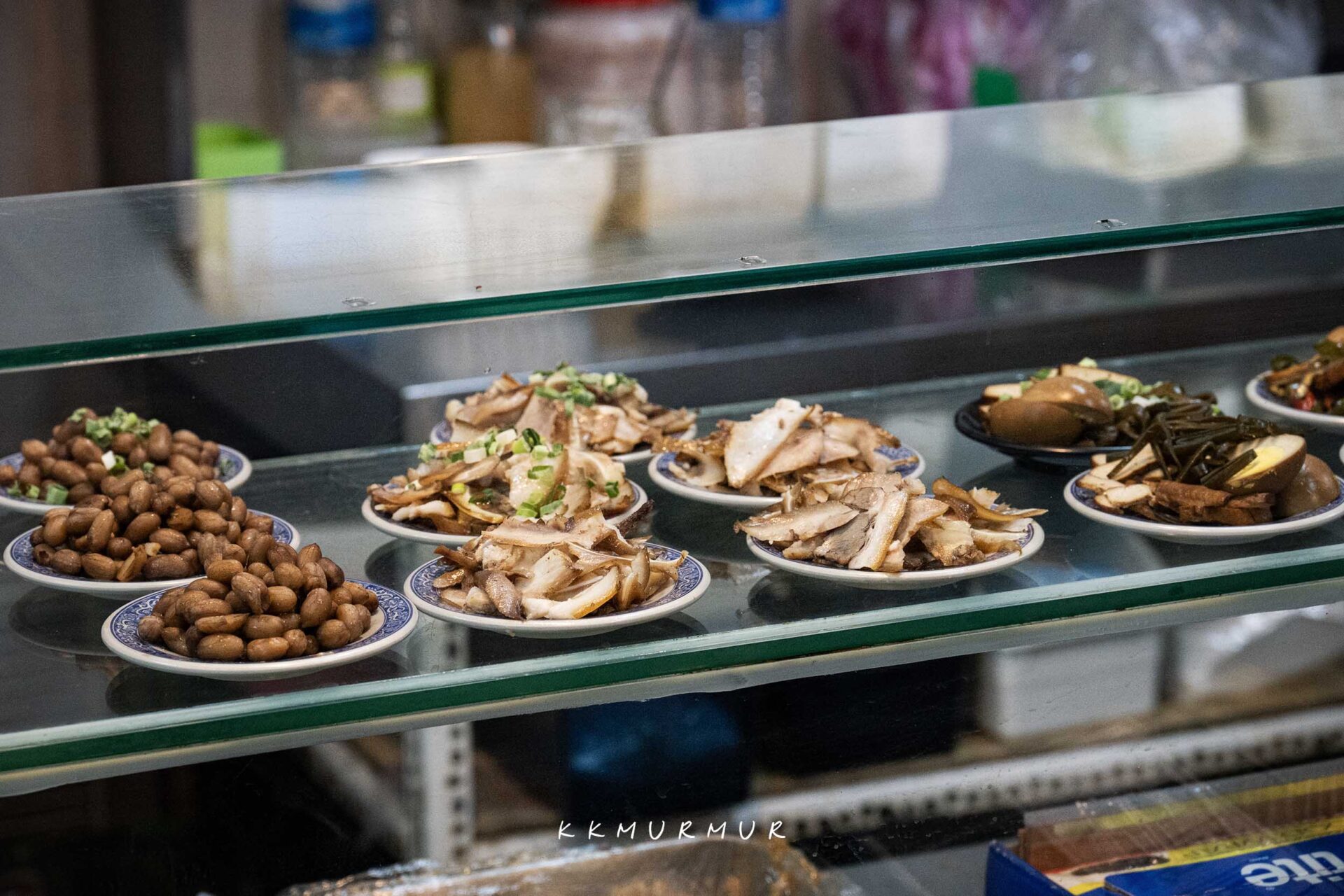 【新娘子麵店小吃-寶清店】除了有招牌的皮蛋乾麵外,那一整排小菜、滷味與涼拌菜,也是這裡的一大看點,選擇豐富、看著都很想點來吃。而許多人推薦的必點小菜是「煙燻豆皮」,今天必須就給他點起來!