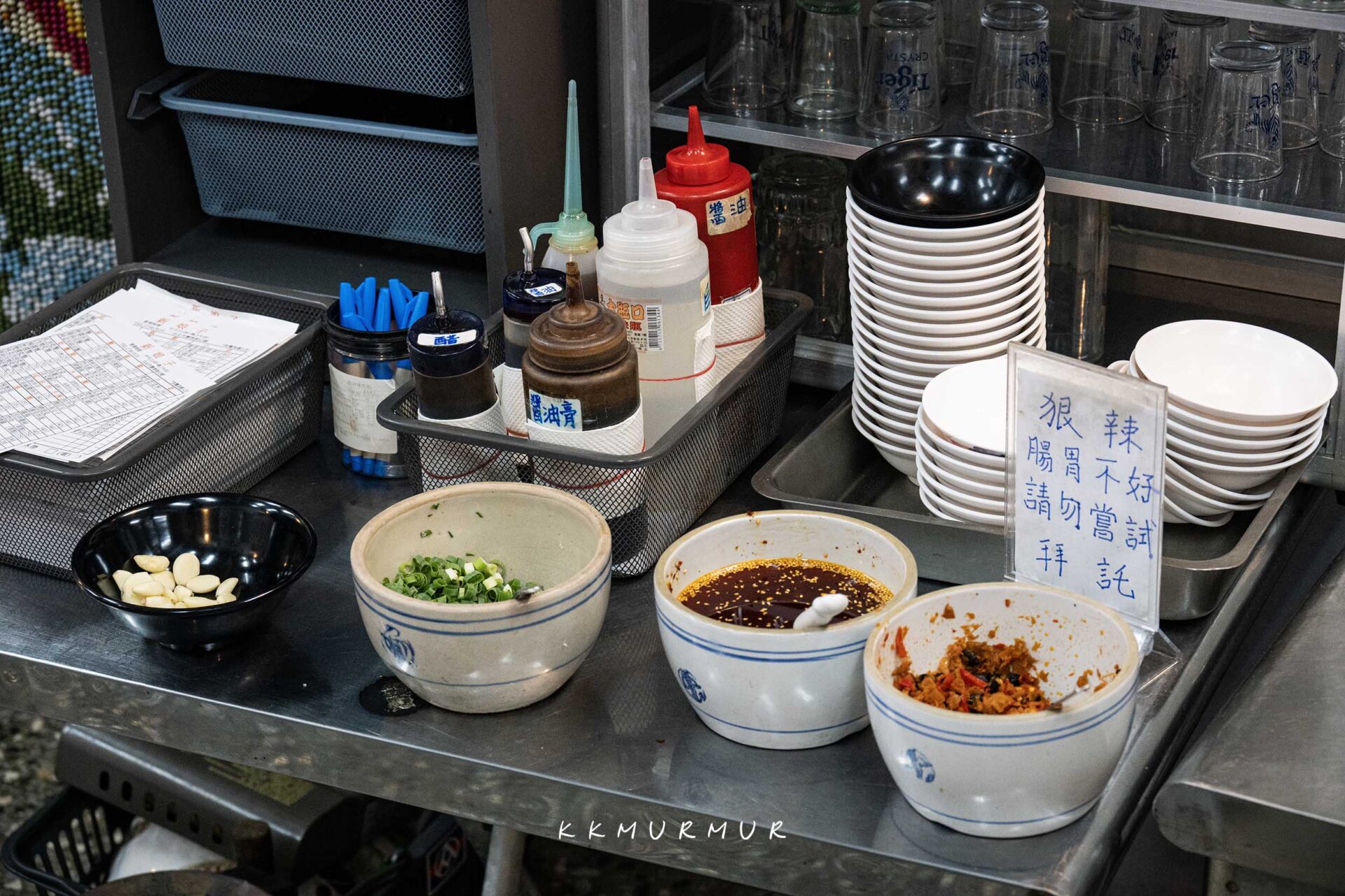 如有需要餐具、各式佐料或醬汁,都可以自行取用,包括蘿蔔辣椒、蒜頭、蔥花、辣油等等都一應俱全,整體來說我覺得這配置十分有誠意,這一套辛香佐料尬下去,想著也是十分過癮。