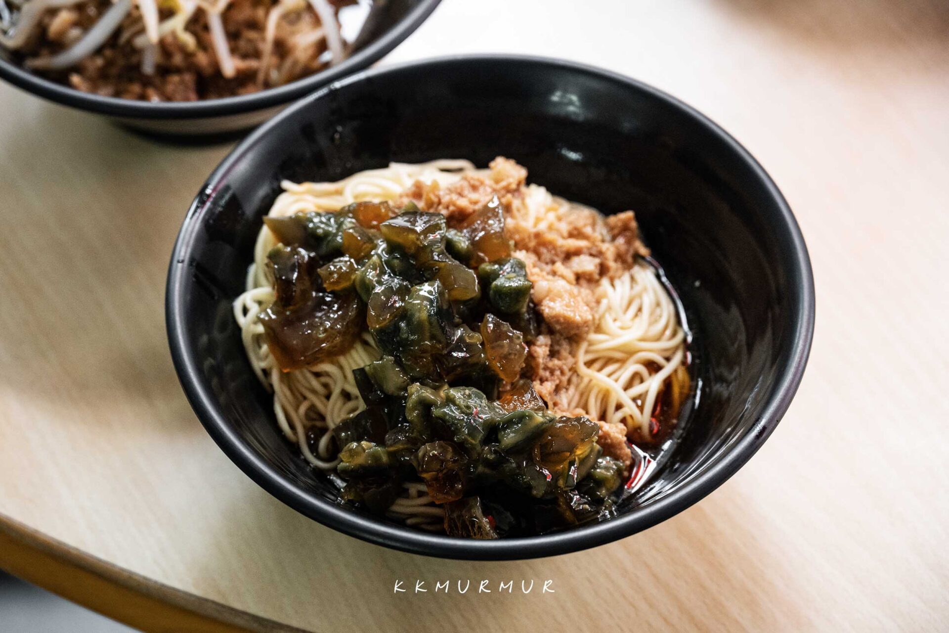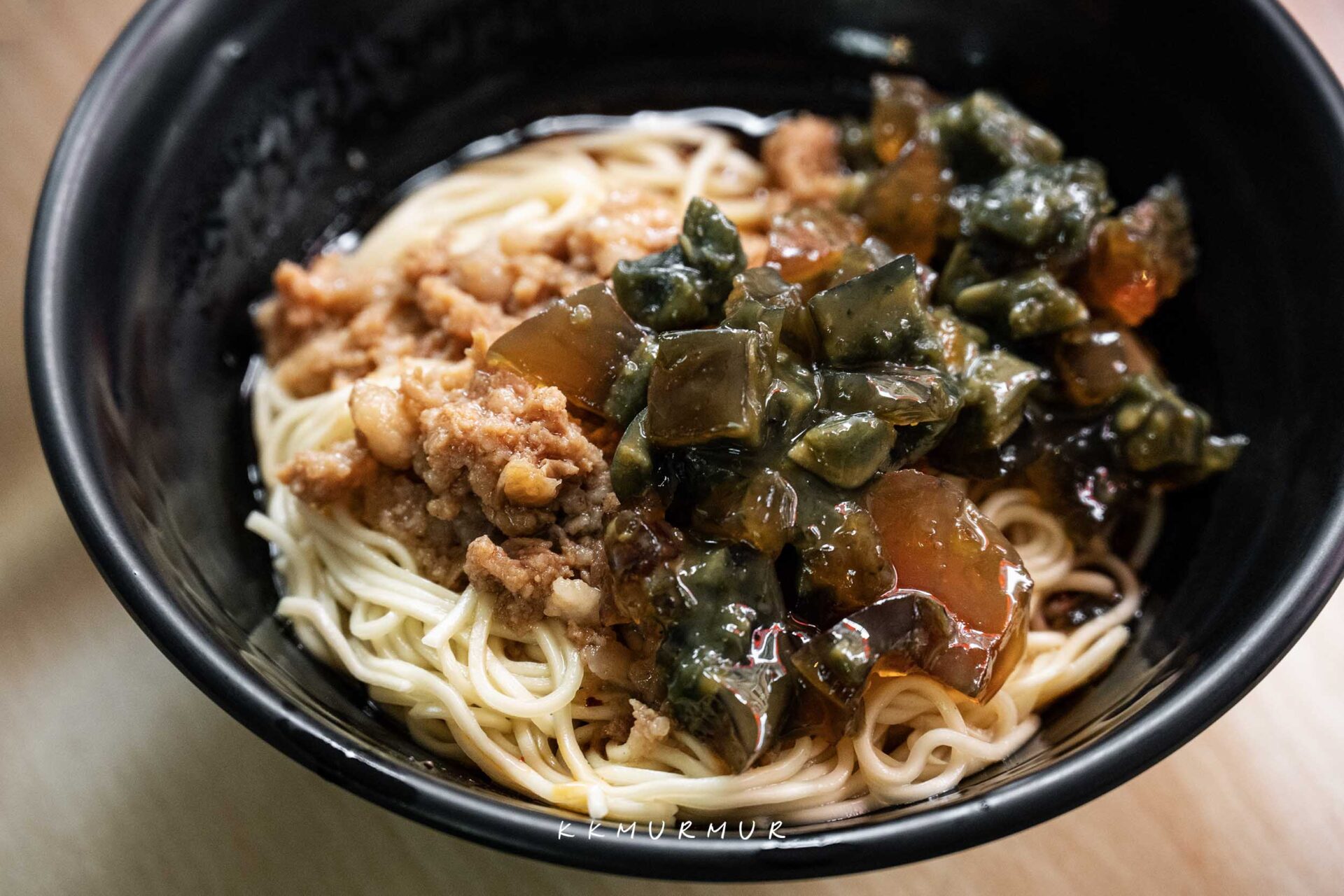 將【皮蛋乾麵】均勻拌開,鹹香夠味帶點小辣、皮蛋香氣濃醇而誘人,肉燥的油香與肉香,賦予了乾麵不同的風味層次,不但更加凸顯了皮蛋的風味,也讓調性更加平衡。整體口味是較濃郁又重口的路線,若是偏好皮蛋味很濃厚的人會十分喜歡!