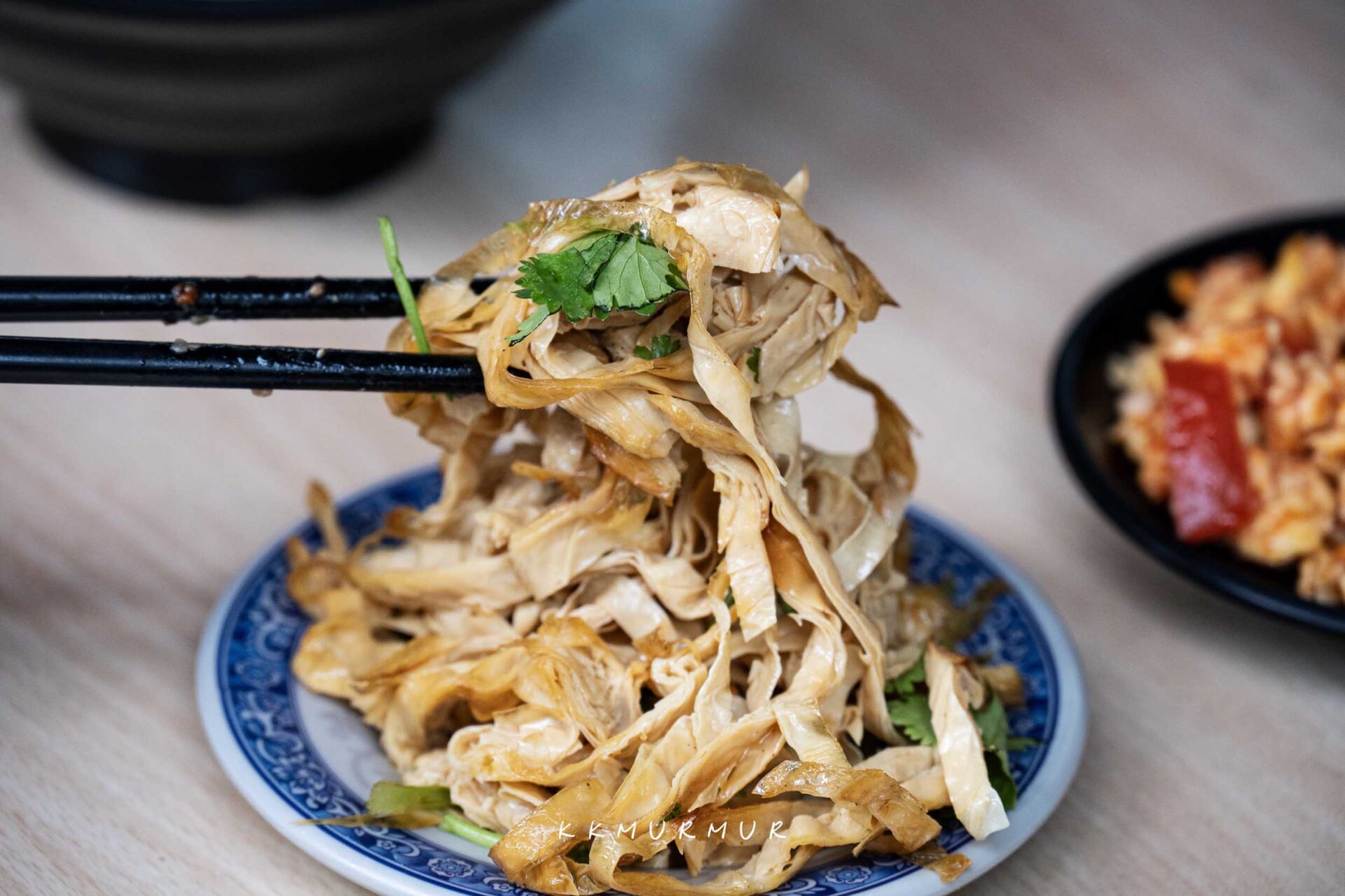【煙燻豆皮】是老闆與許多網友大力推薦的小菜,有著鮮明的煙燻氣息,豆皮是走較為乾爽的路線,吃起來帶點咀嚼感與Q度,隨著美亞咀嚼,豆香與煙燻的香氣互相提襯,越吃越開胃。