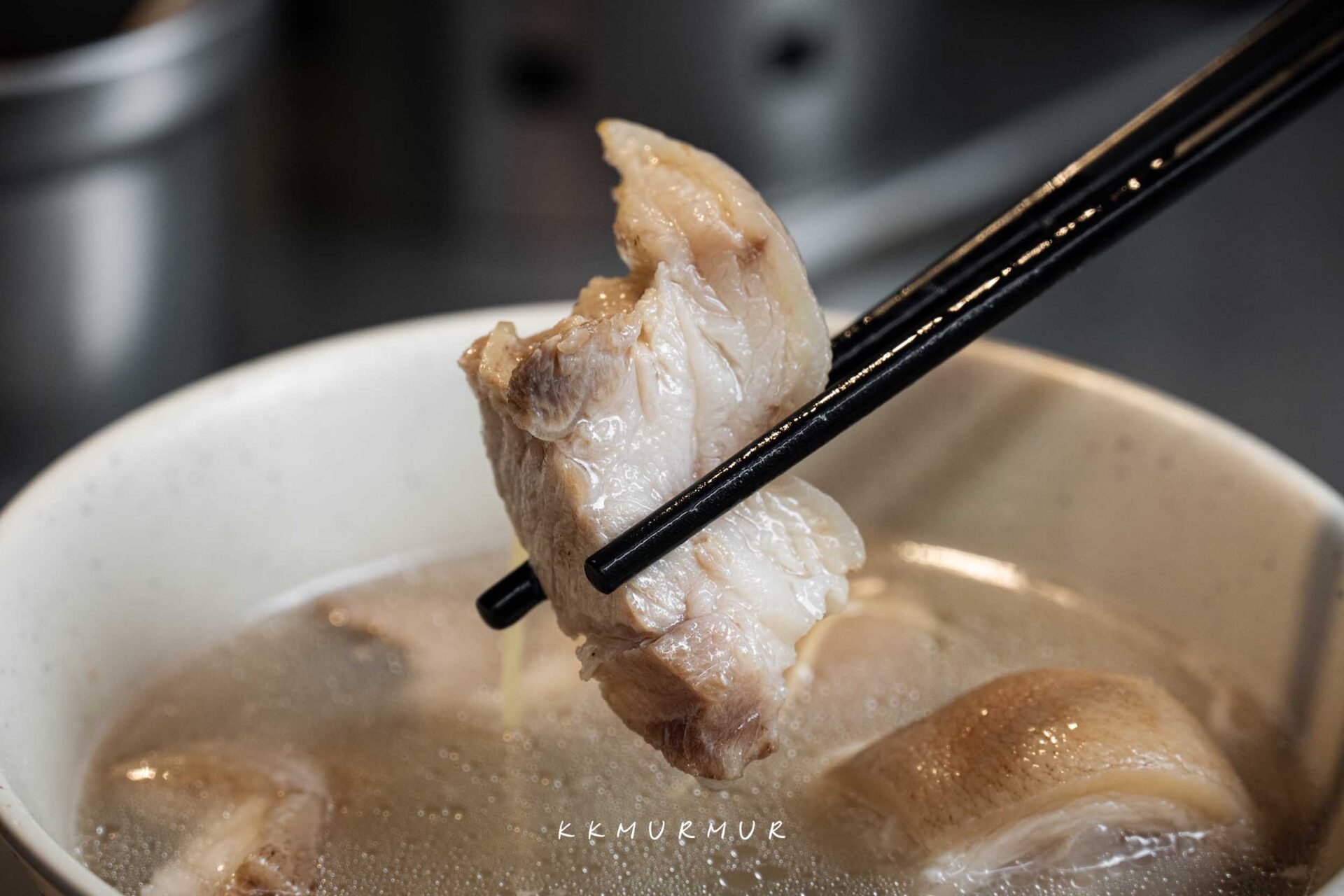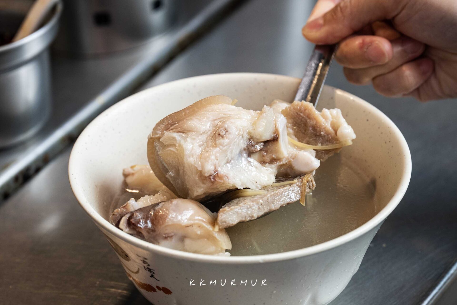 這裡的湯頭絕對是招牌一絕,有別於紅燒豬腳,與附近的歸綏街當歸豬腳老店那種藥膳湯軸,【許仔豬腳麵線】是主打精燉白湯,湯頭醇郁兼具溫順,出餐前會加入一點米酒,香氣會被更為提襯。