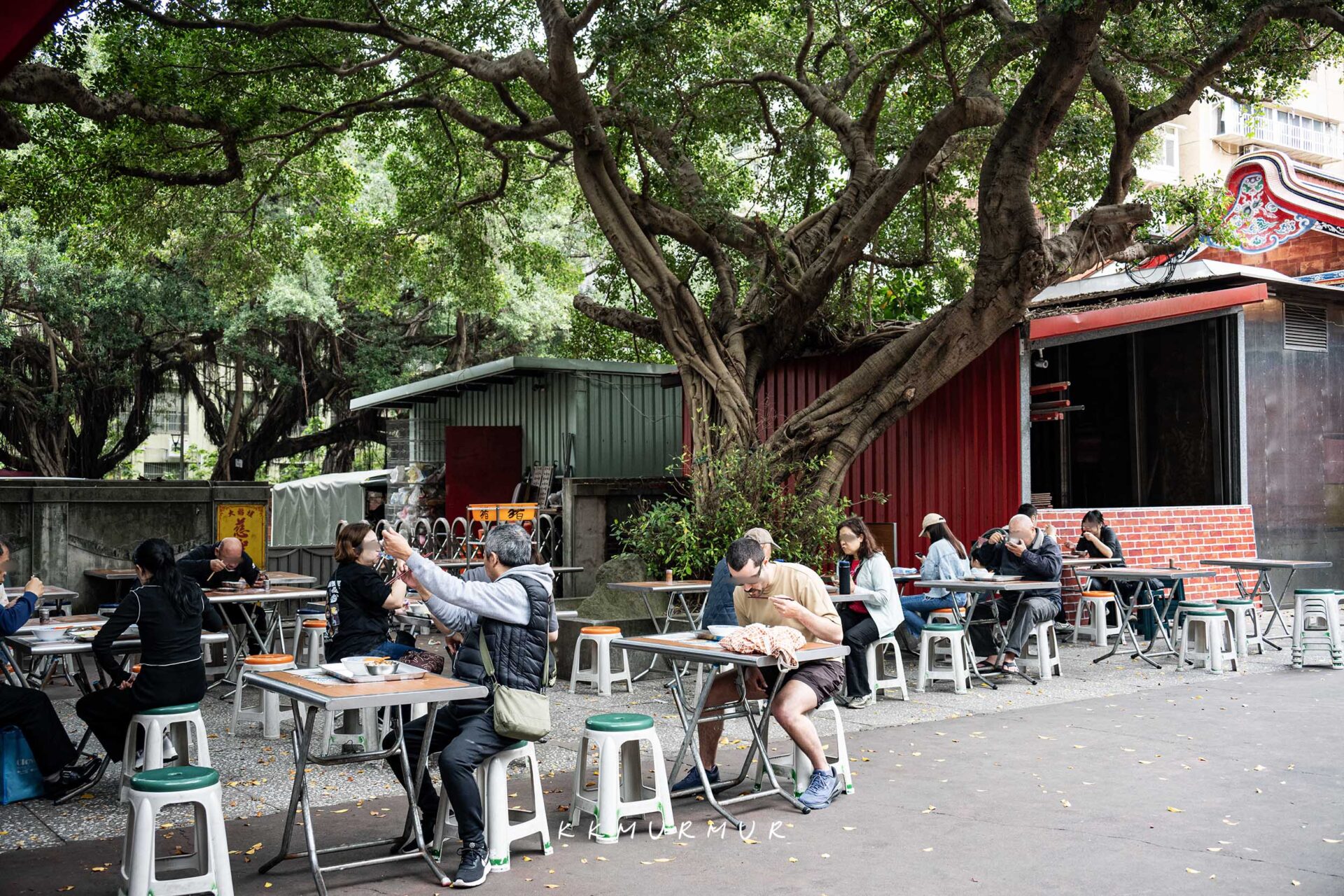 【葉家肉粥】位於大稻埕慈聖宮前的11號攤位,若要內用的話,需先走到慈聖宮大榕樹下的區域,再跟服務人員說想要的餐點;外帶的話就直接在攤位跟老闆說即可。到訪這天是平日上午,氣溫宜人,在榕樹下品嘗餐點、感受著台式浪漫還是挺不錯的。