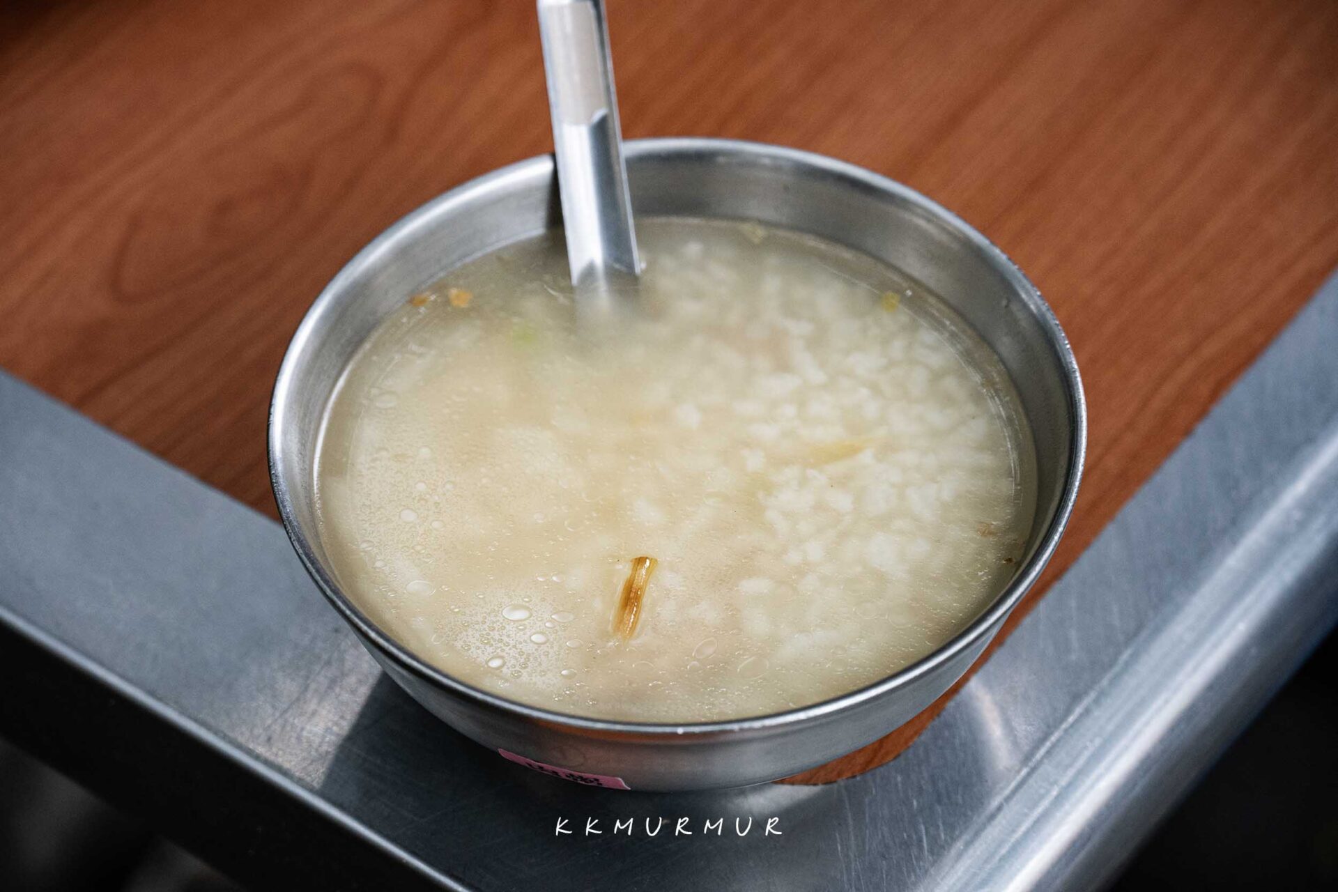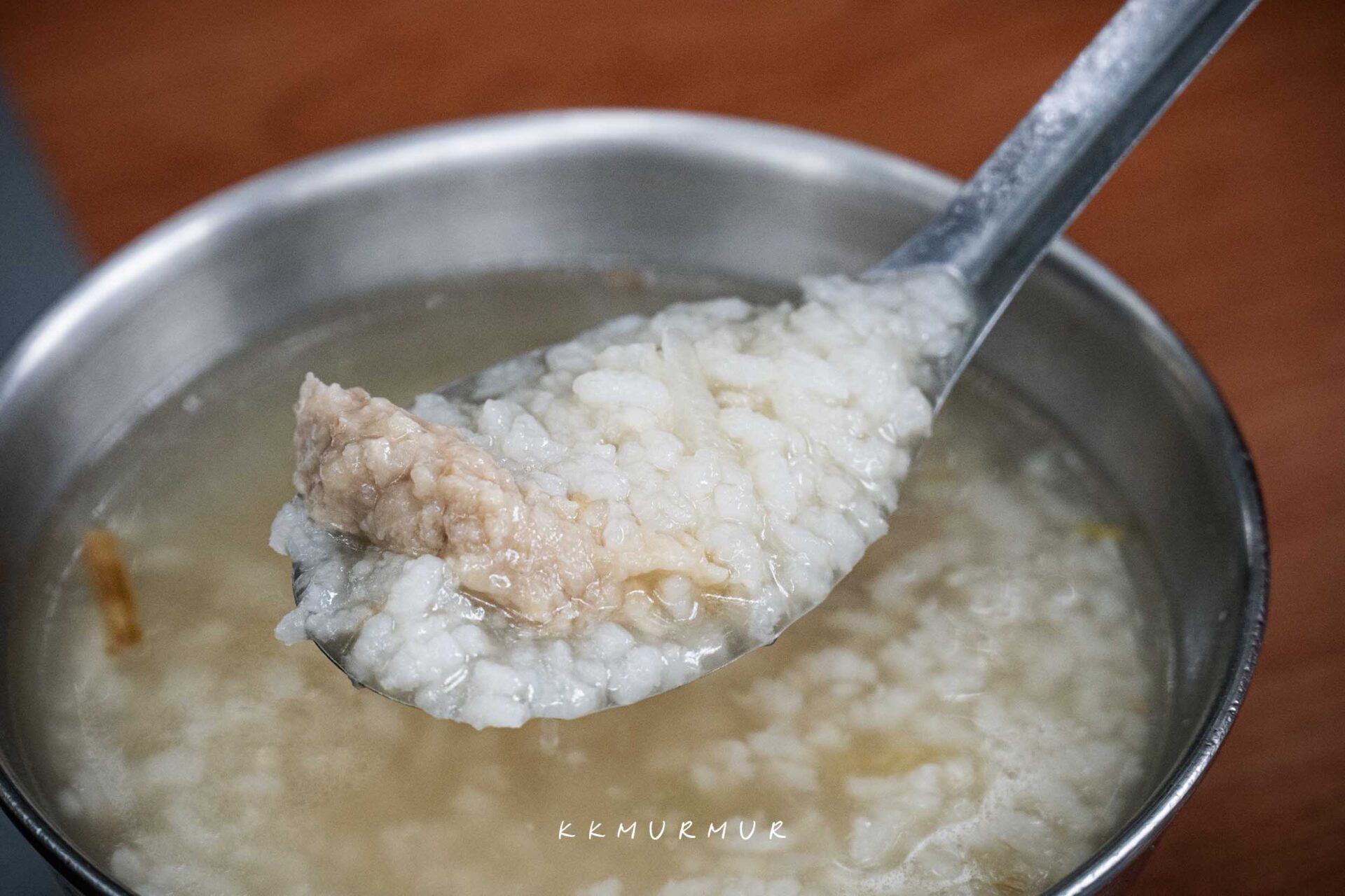 【肉粥】的型態是類似傳統的湯泡飯,粥體粒粒分明而不軟爛,湯頭喝起來較為清爽溫順,風味屬性較為淡雅。裡面還有兩條里肌肉、肉感不錯,但整體來說我覺得口味較為中規中矩,不會讓人一吃就感到驚艷,是適合日常品嘗的傳統古早味。