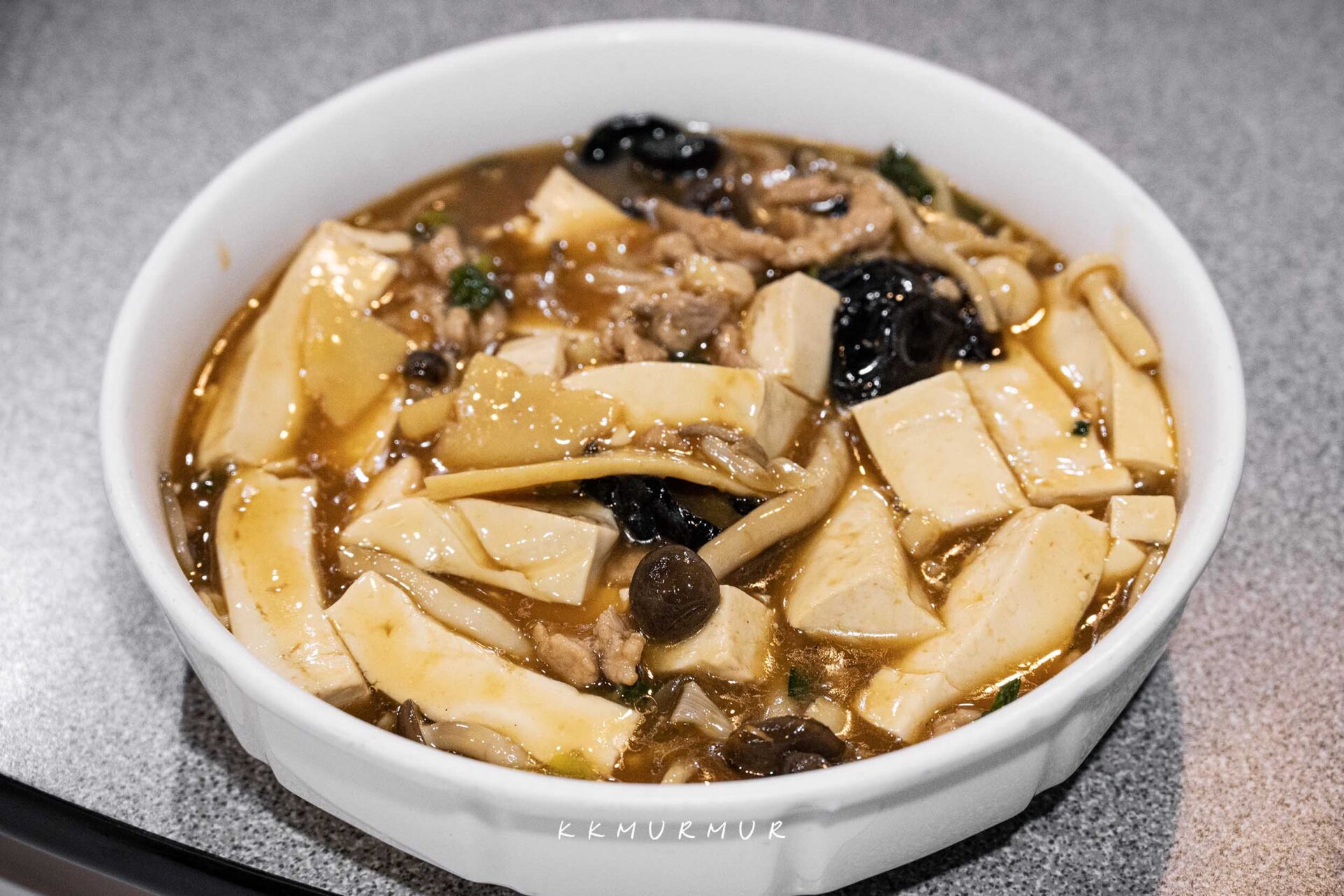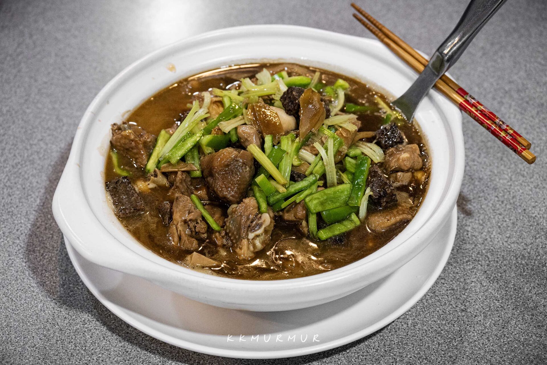 裏頭的料非常多,大量的雞肉、米血、生豆皮、寬粉絲與青椒等食材,在飽吸濃醇但不過重的紹興雞湯汁後,入味滿分、層次感豐富,紹興酒的香氣雅緻而不過於強烈,醬香醇郁中帶點微甜,光醬汁我就可以配好幾碗白飯,好吃又下飯!