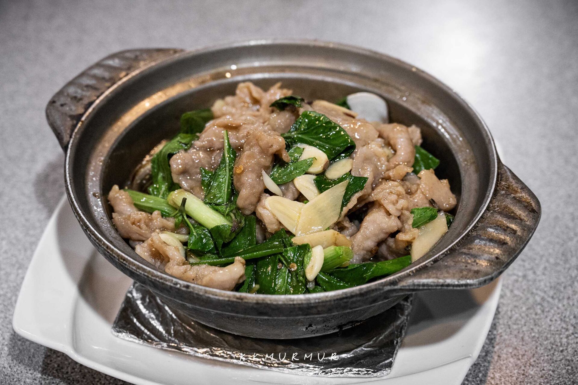 【塔香松阪蛤蜊煲】的口味很有記憶點,上層滿滿的松阪豬肉,下層則鋪墊著新鮮的蛤蜊,蛤蜊的鮮美與九層塔的獨有滋味,經過文火慢褒後香氣十分逼人,醬汁緊密扒在軟嫩又帶彈性的松阪肉上,爽鮮順口不失滋味,吃得挺過癮。