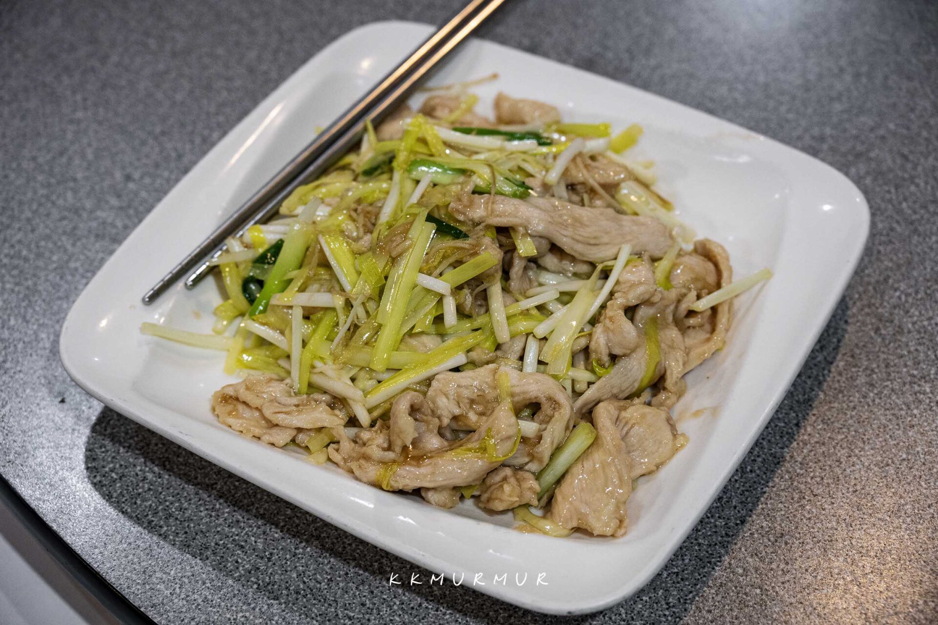 【韭黃雞片】份量跟其他菜一樣很有誠意,雞片質地滑順而軟嫩,韭黃的香氣鮮明但不過重,鹹淡調味上也拿捏得挺適口,滿好吃的!