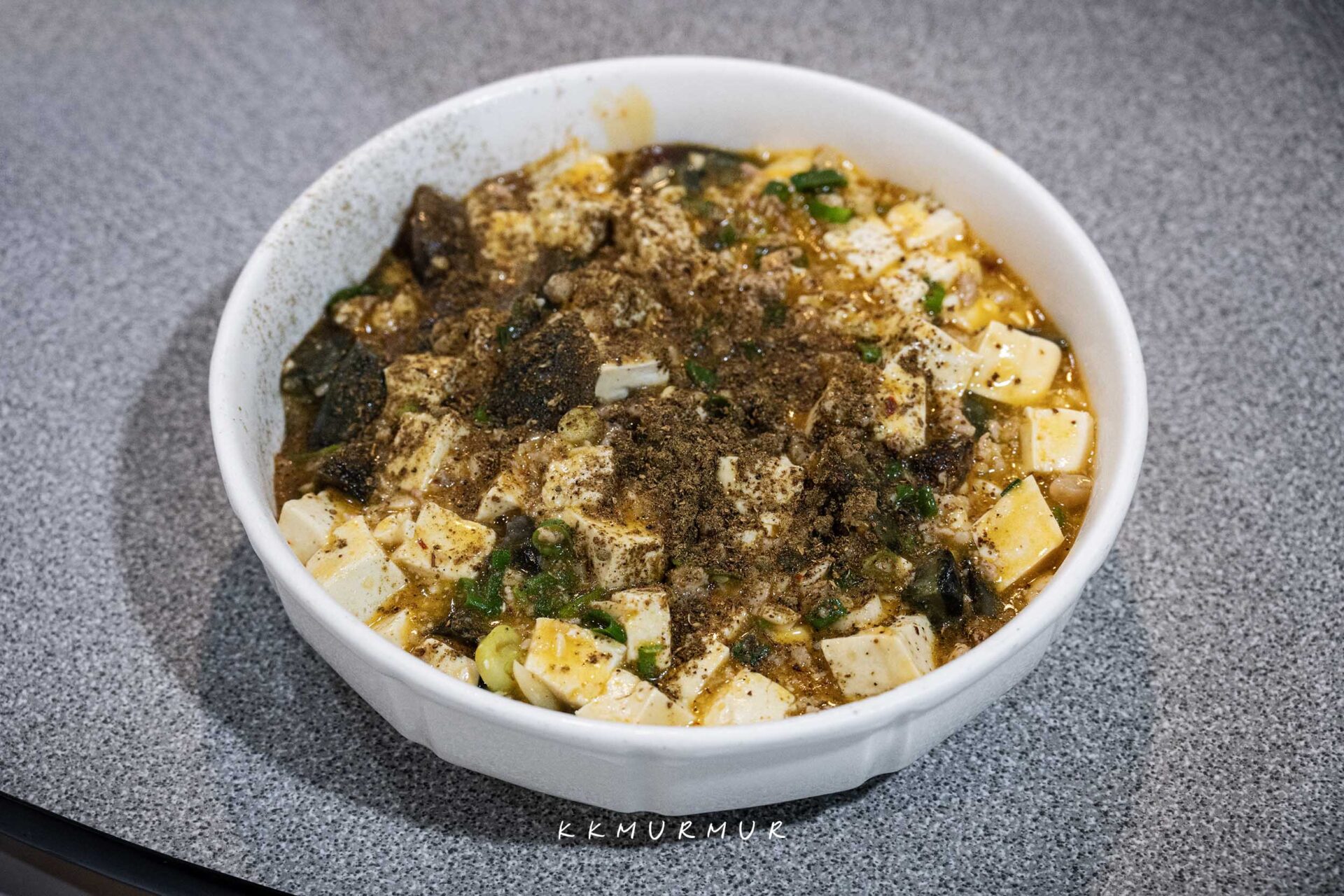 【麻皮豆腐】就是麻婆豆腐加皮蛋,麻感與辣感不會強烈、皮蛋的香氣也不算太鮮明,整體就是很家常的滋味,不是那種川味麻婆豆腐的香麻帶辣路線。