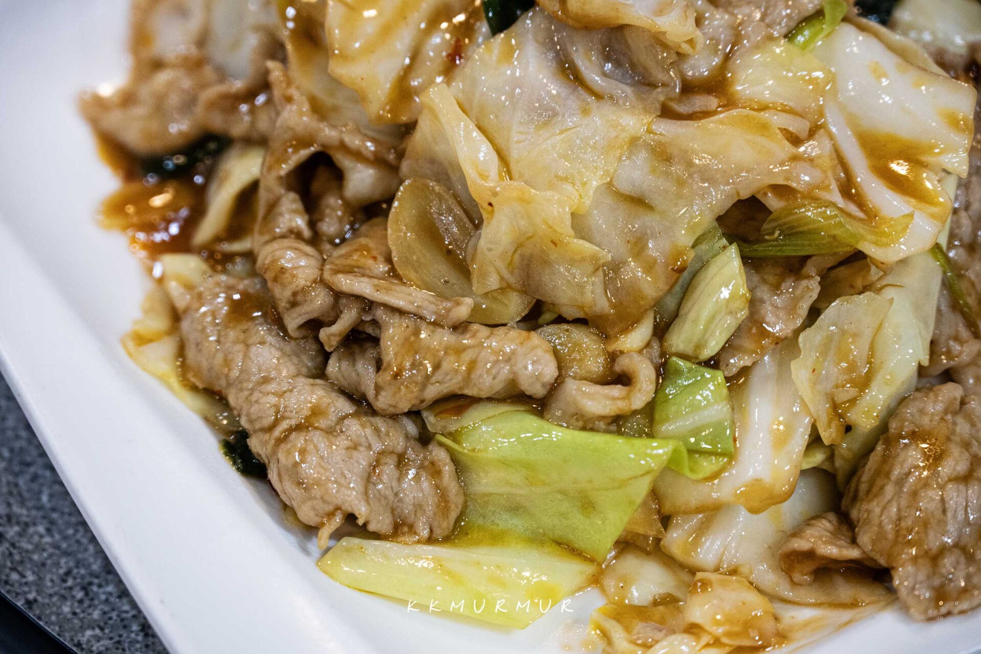 【豆干里肌肉絲】是呈現醬感鮮明且較為濕潤的風格,香氣、口味與口感都OK,是非常家常的滋味,雖說無法跟六品小館那種讓人讚嘆的豆干肉絲去對比,但考量到實在的份量、下飯的口味與$190的價格,絕對是便宜實惠又高CP!