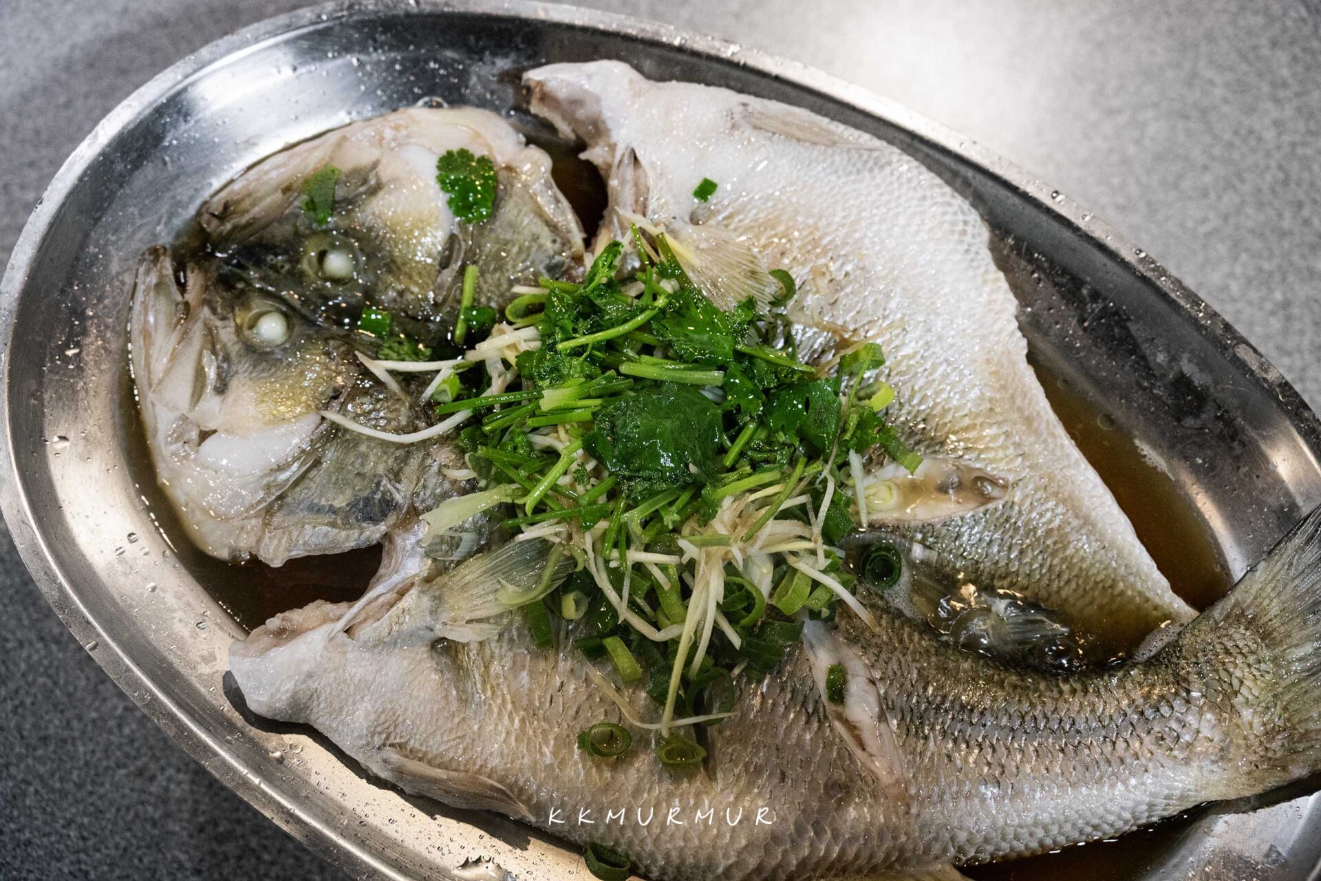 【清蒸泉鱸】的肉質細緻,新鮮度也完全沒問題,用清蒸的來料理,最能吃到新鮮魚貨的鮮美。