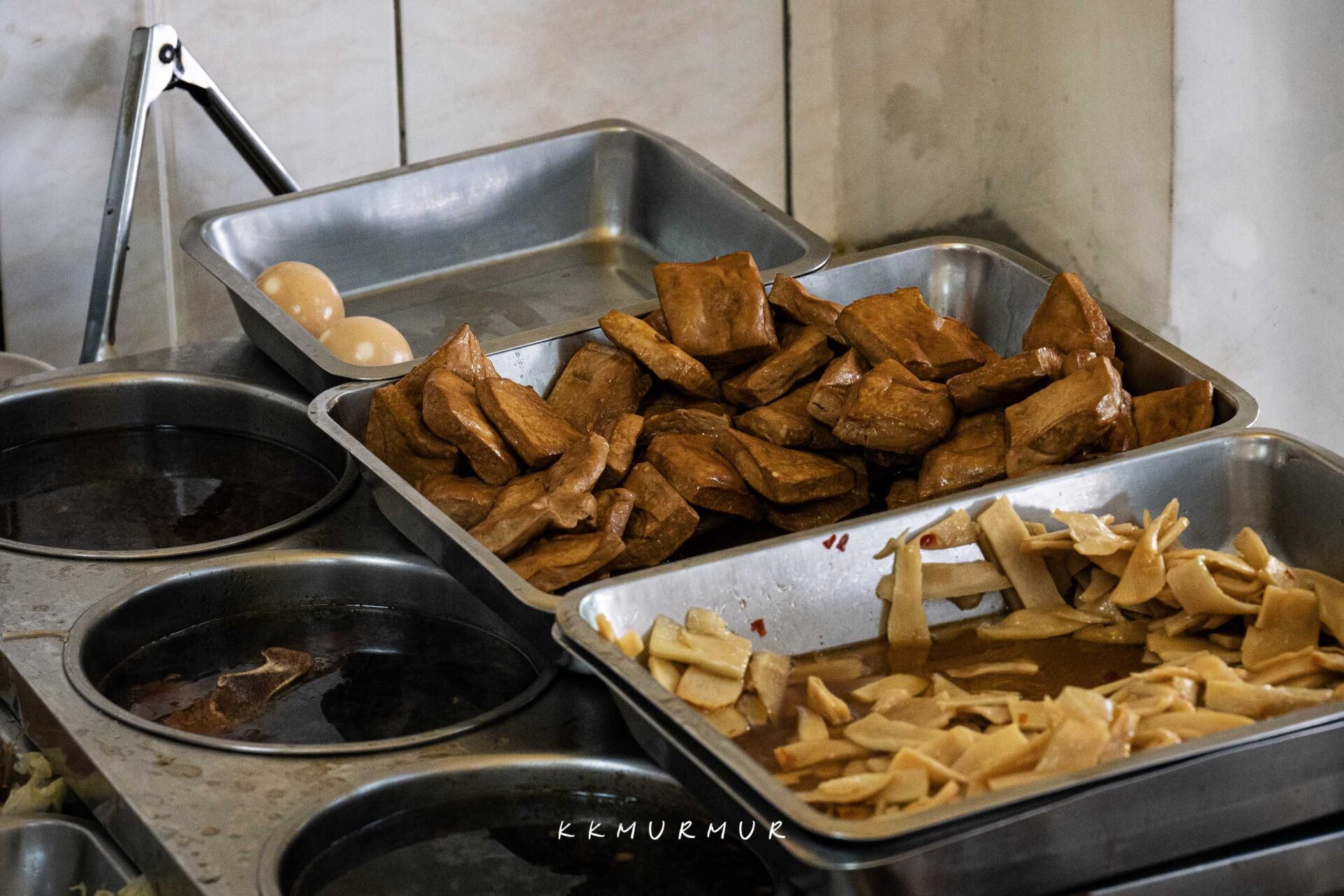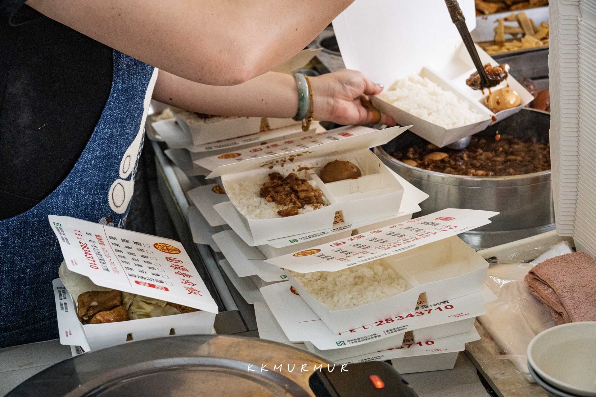 放配菜、淋滷汁,滷肉給得毫不手軟、很有誠意,在點餐檯前整個很香、很誘人。這天到訪時店家有接到50個便當的大單,因此有等候了一段時間,平常來用餐的人也是很多,但速度可能會再稍快一些。