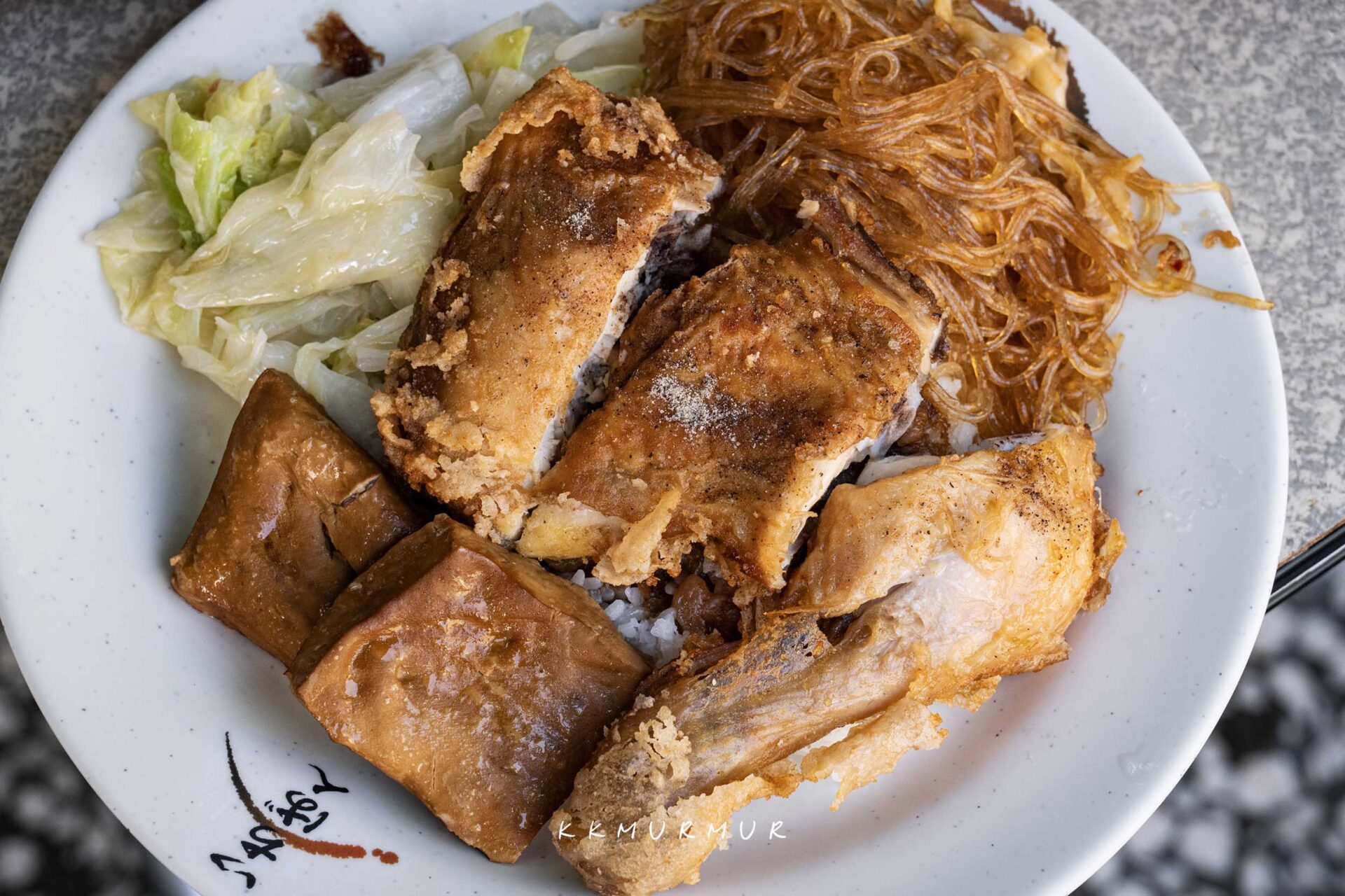 來此就是為了這傳說中的招牌炸雞腿,看那金黃酥脆的外衣,以及服務人員手起刀落的在分切雞腿,看著就十足誘人。另外,雞腿便當統一都是切好出餐,若偏好整支不切直接食用,記得在點餐時跟服務人員說哦!