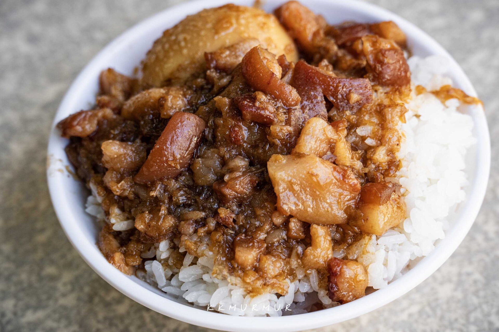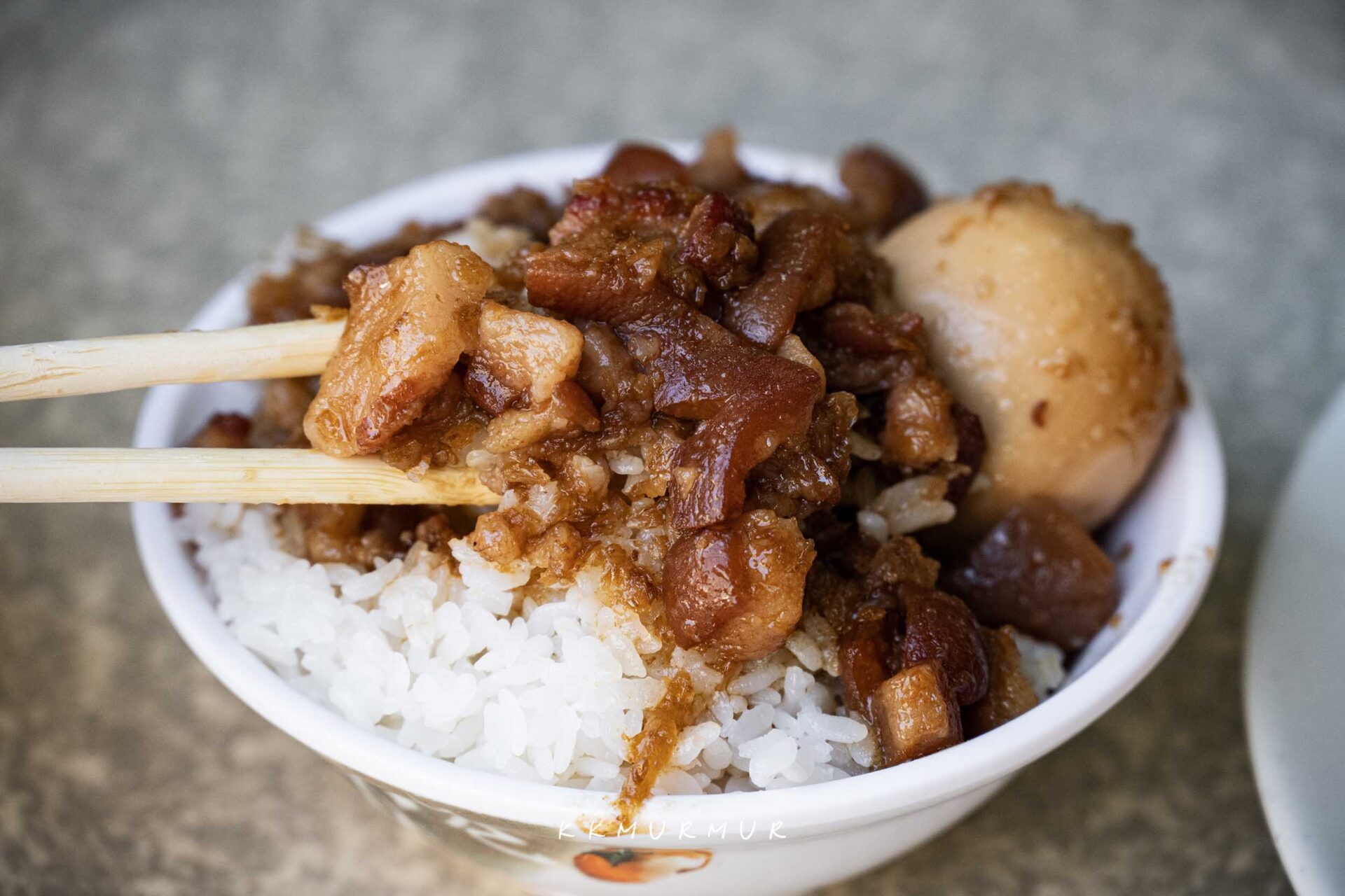 【魯肉飯】給的魯肉量很多,一開始看到還有點擔憂會太鹹,結果香氣非常的醇郁而不過重,入口咀嚼時最大的感受是那豐厚的膠質,那迷人的黏嘴感與油香,醬香逼人帶點微甜尾韻,雖肥肉比例不低,但整體吃起來很順口、鹹淡控制得宜,香氣的層次也很豐富,是碗走出自己風格又厲害的滷肉飯。我們另外加價10元多了一顆滷蛋,這組合也是相當推薦,還能補充一點優良蛋白質!