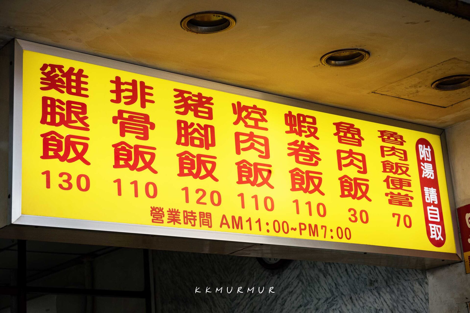 【圓環魯肉飯】的菜單如上,共有六種口味的便當可以選擇,主打招牌就是雞腿飯,若是第一次來的話強力推薦試試看,整體來說,有主菜的便當價格普遍落在$110-$130之間;而這裡的魯肉飯也是很優秀,網路上有著很不錯的評價,若不想吃整份便當,推薦也可以吃點這個!