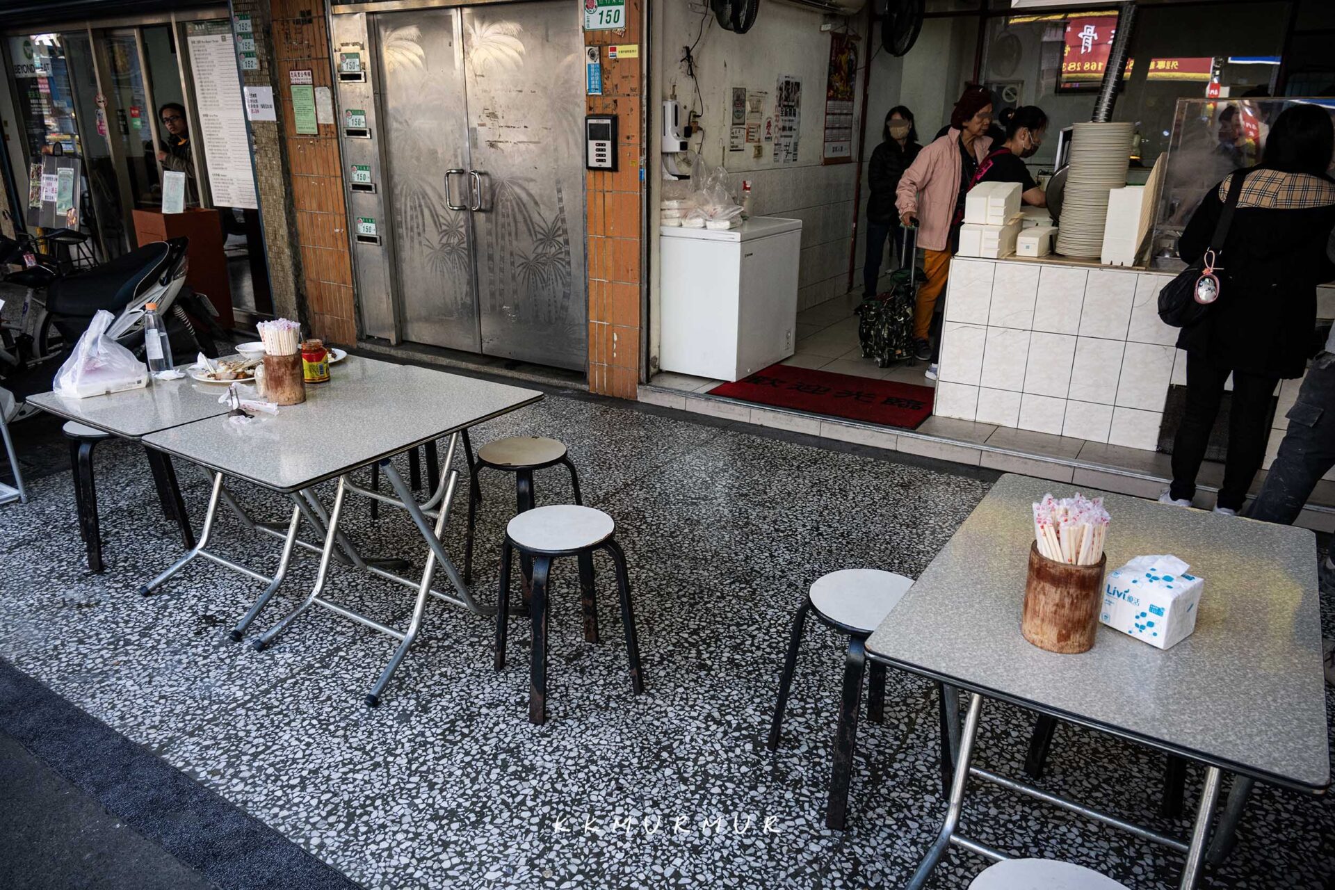 店內有可供用餐的室內座位,但這天到訪大部分人都是選擇外帶。我們則是因為帶著寶寶有推車,就選擇坐在騎樓的座位區域,這天天氣滿好的、氣溫宜人,坐在這邊吃著超過癮炸雞腿,真的是舒服!