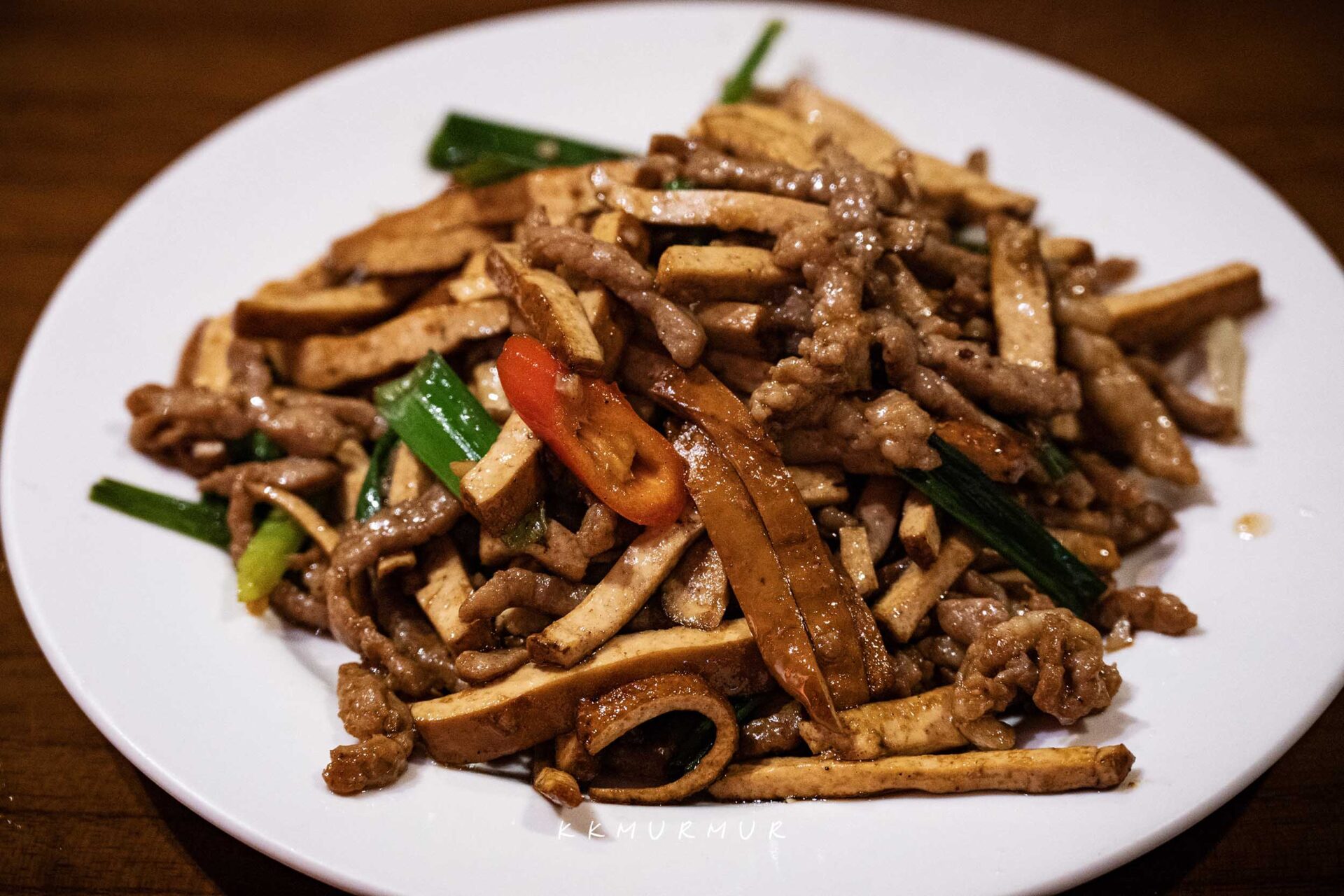 豆干絲與肉絲不是那種切到極細的路線,但整體的醬香與鍋氣都還滿不錯的,豆干質地滑順、肉絲鹹香夠味,加點小辣更是稱職的白飯小偷。