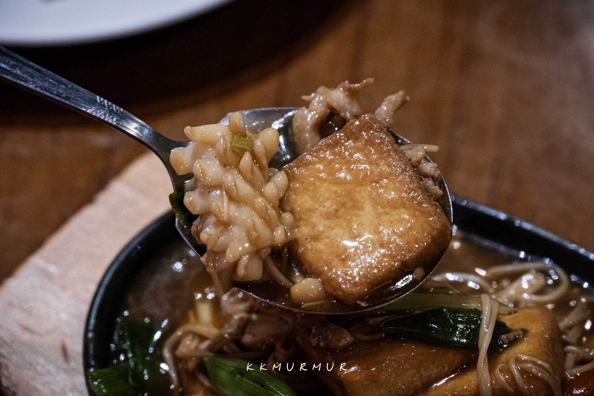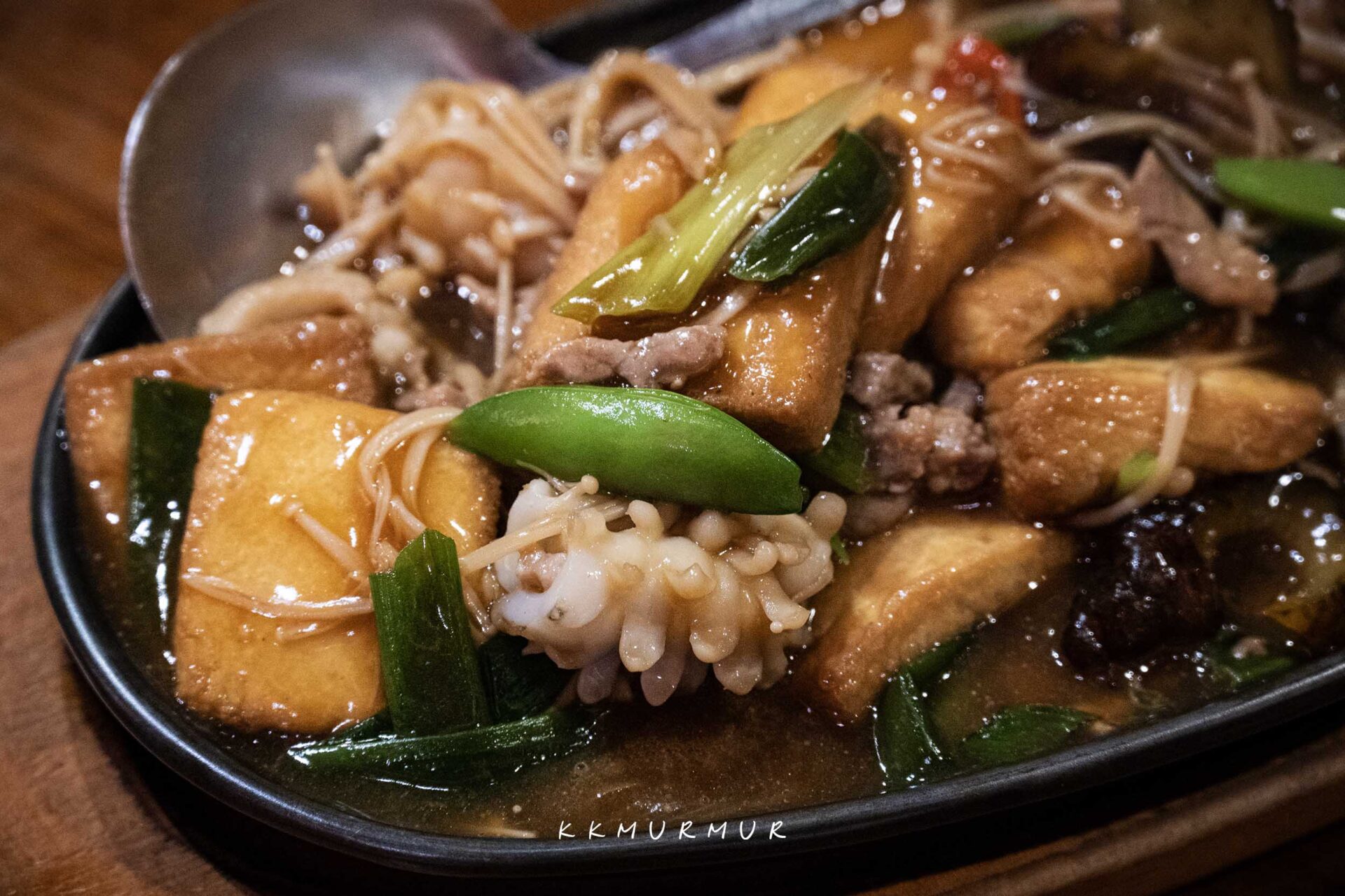 醬香濃郁帶點微甜,醬汁芡度拿捏適中,緊密扒在水嫩的豆腐上,鹹淡控制也很剛好。用料實在,除了豆腐外還有豬肉、金針菇、魷魚與一點海參,以這價格來說我覺得非常佛心又美味了。