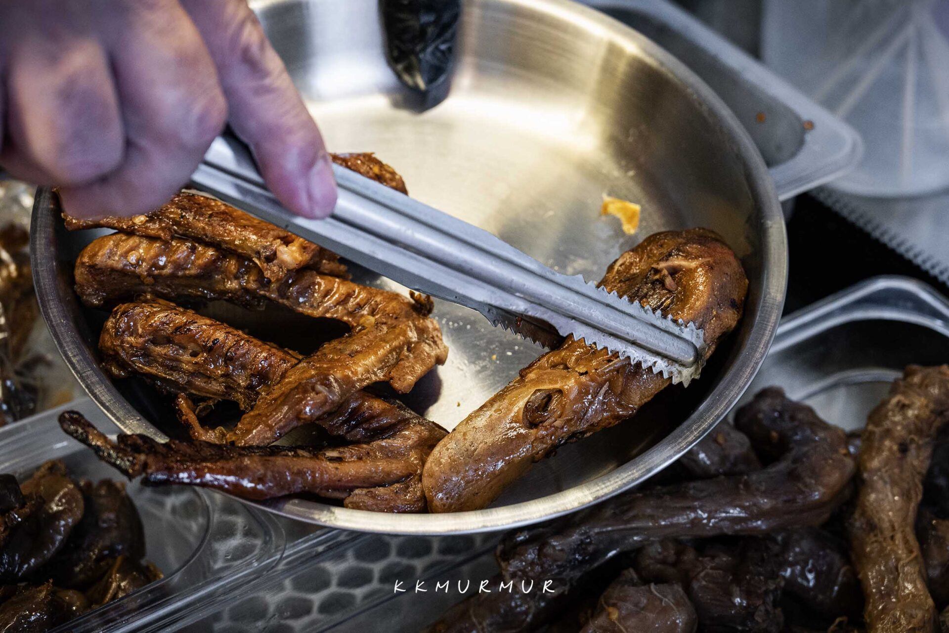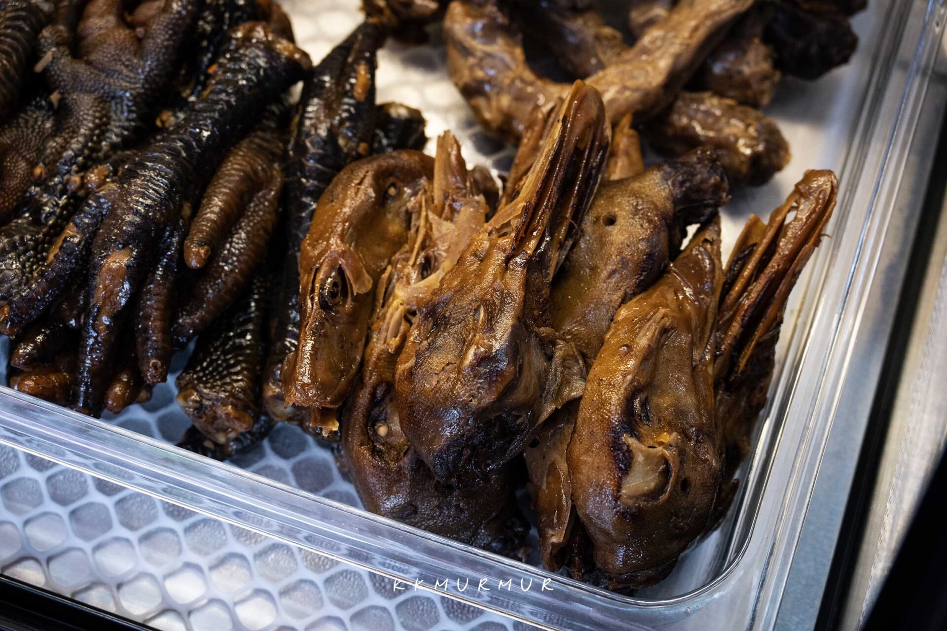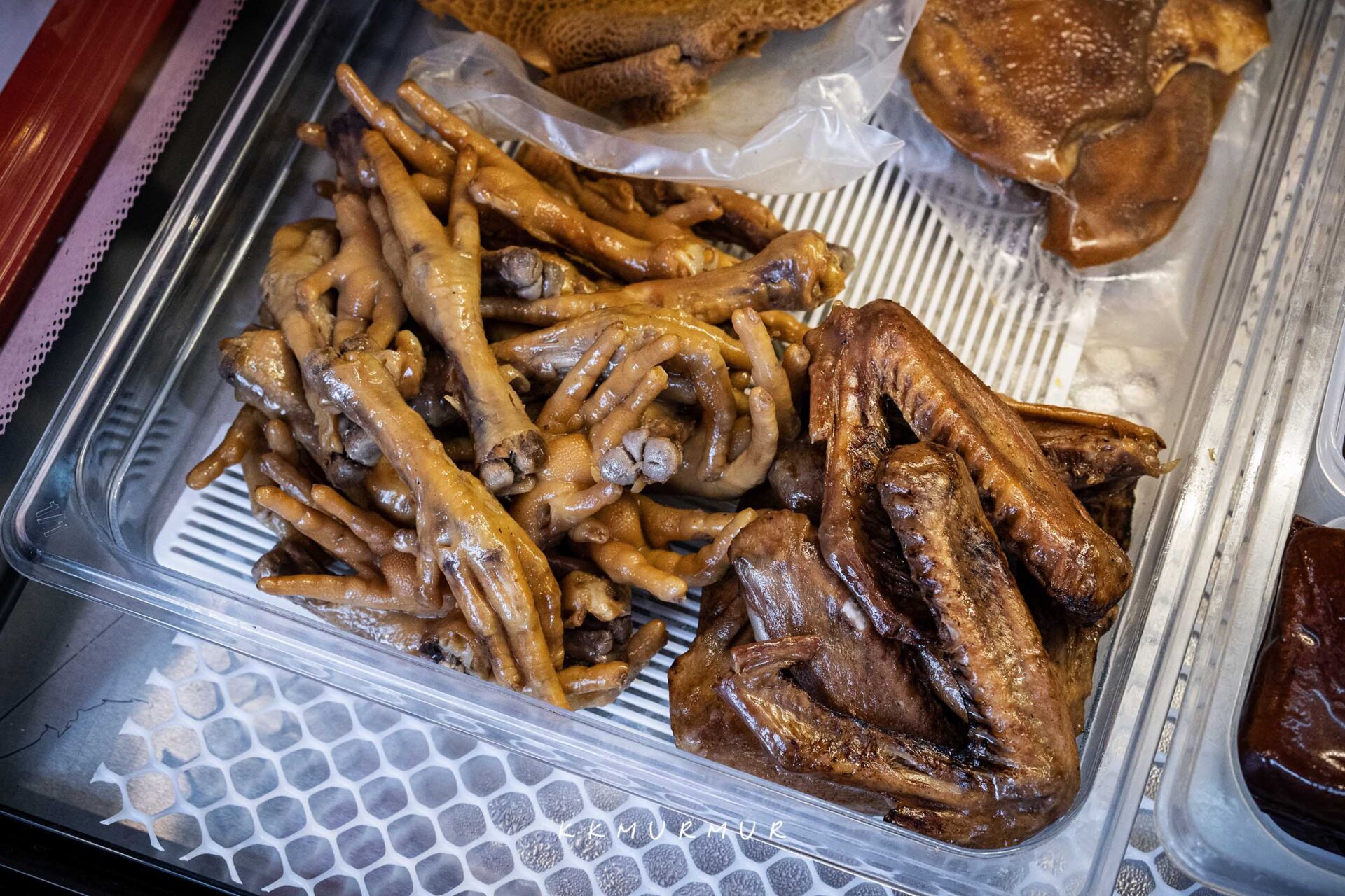 【追蕾醬香黑鴨】的品項雖非多到琳瑯滿目,但堪稱樣樣經典,其中鴨翅、鴨脆腸、黑雞腳、雞心與鴨頭等等都是廣受好評的人氣招牌,看這滷味的成色與油亮光澤,看著就好好吃啊!