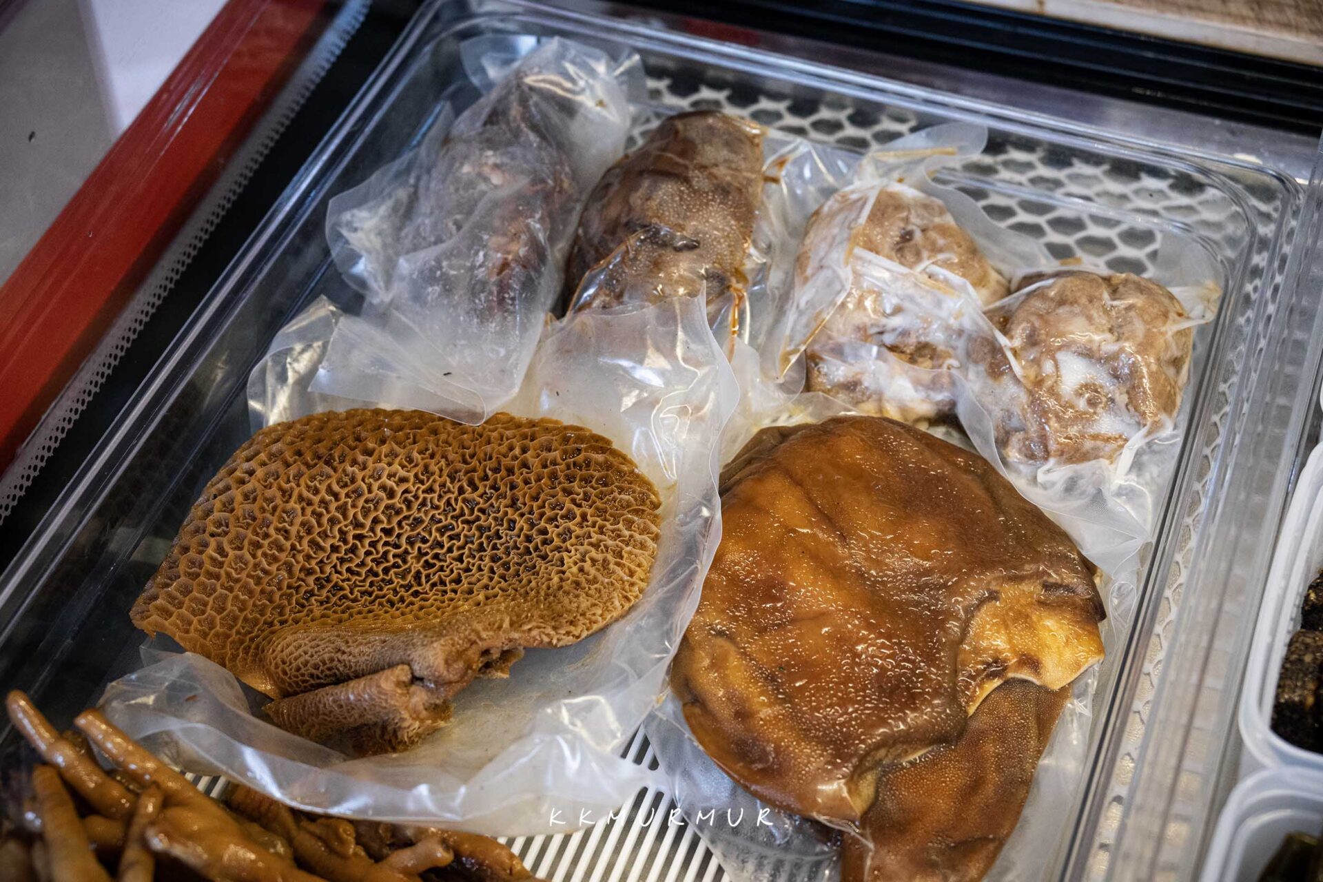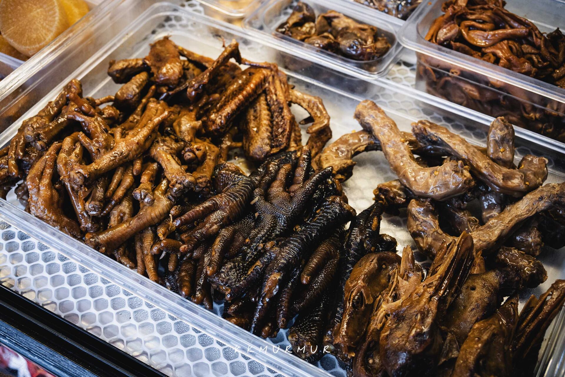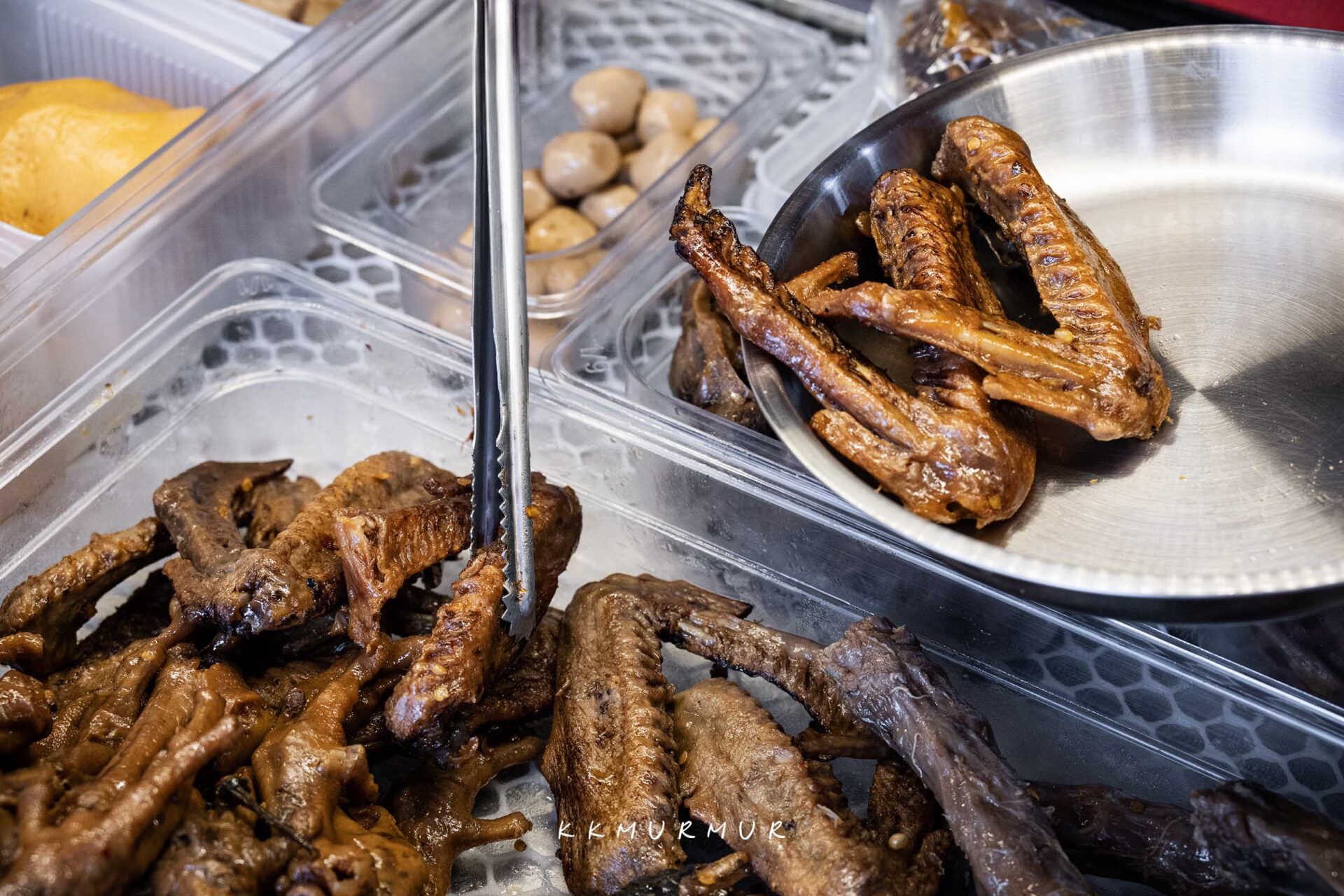 【追蕾醬香黑鴨】的品項雖非多到琳瑯滿目,但堪稱樣樣經典,其中鴨翅、鴨脆腸、黑雞腳、雞心與鴨頭等等都是廣受好評的人氣招牌,看這滷味的成色與油亮光澤,看著就好好吃啊!