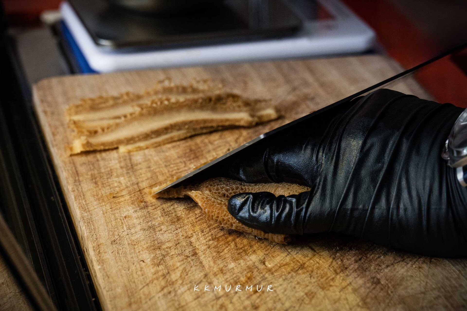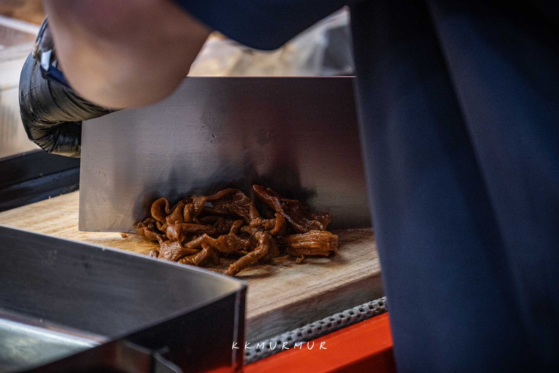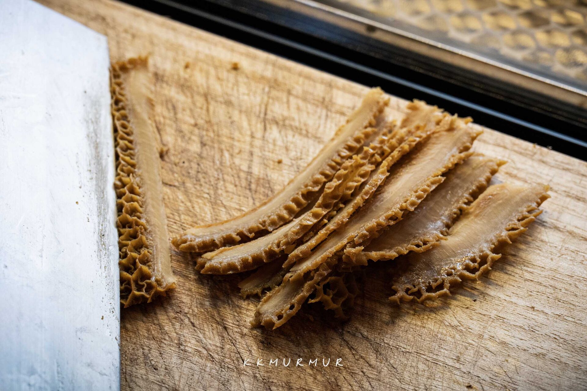 【牛肚】與【豬耳朵】都是店內很熱門的滷味品項,看師傅那俐落的斜切刀法,精準拿捏厚薄程度,只求讓滷味有著最好的口感與品嘗體驗。