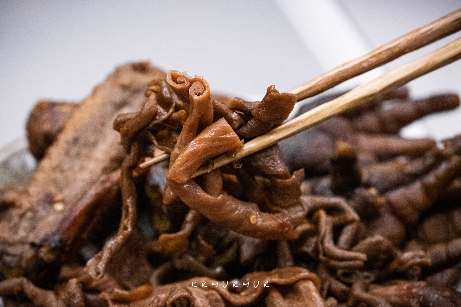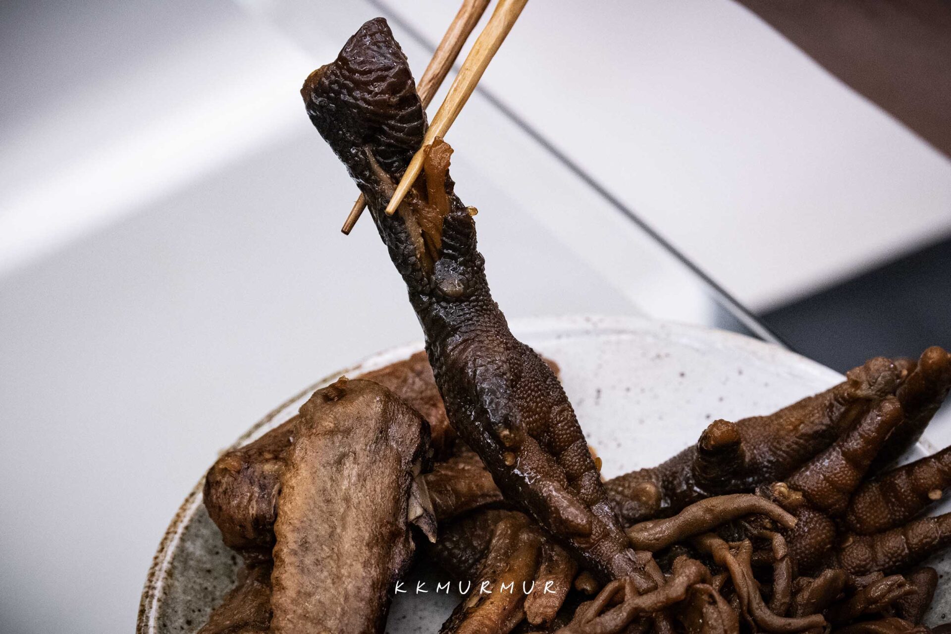 喜歡雞腳的人也不能錯過,這裡有雞腳與黑雞腳兩個品項,我點的【黑雞腳】是較為大支且肉更多的版本,價格相對高一些,但吃起來絕不後悔,膠質豐厚不軟爛、 入味十足很夠味,那帶點椒麻與藥膳的香氣,更是一絕!
